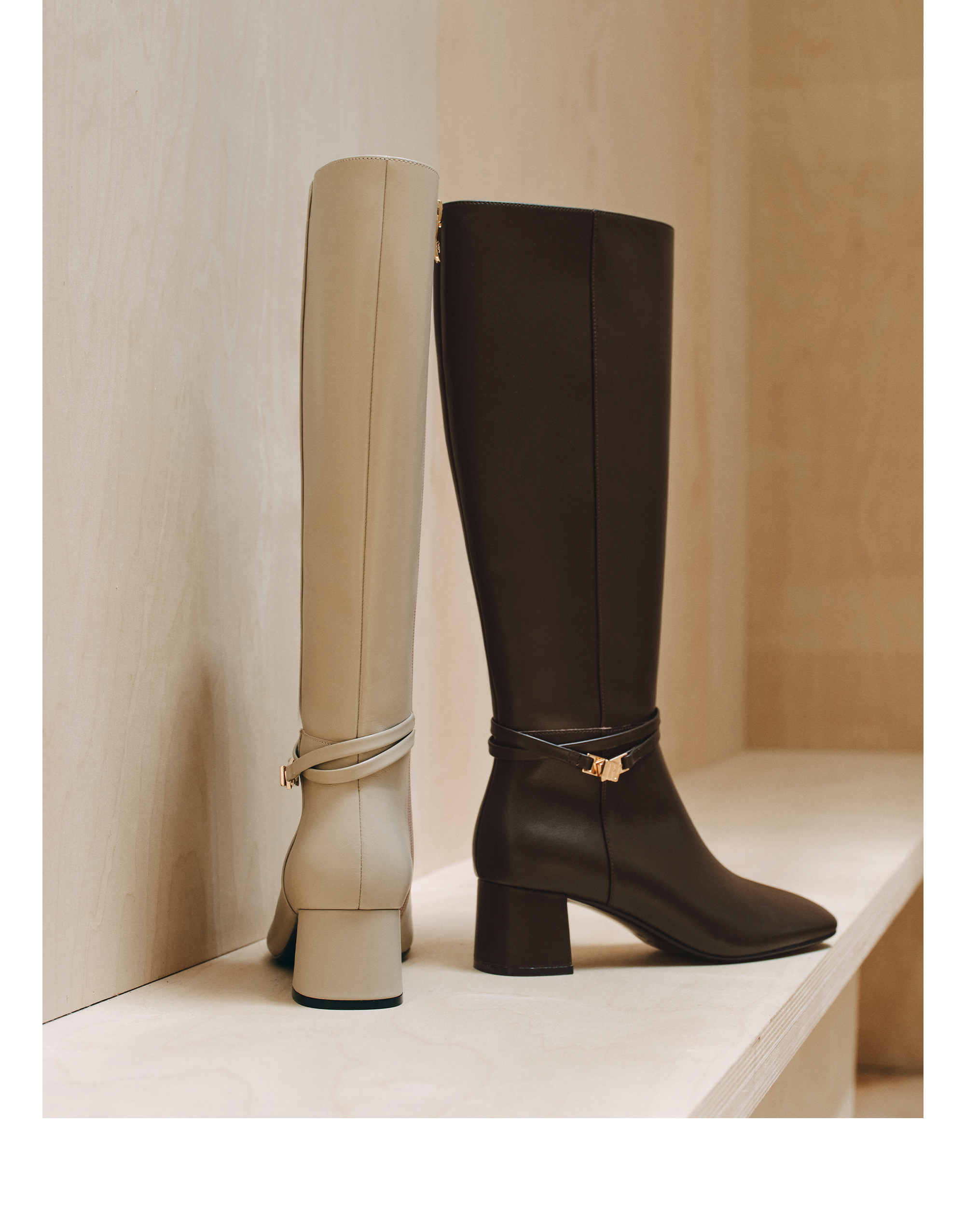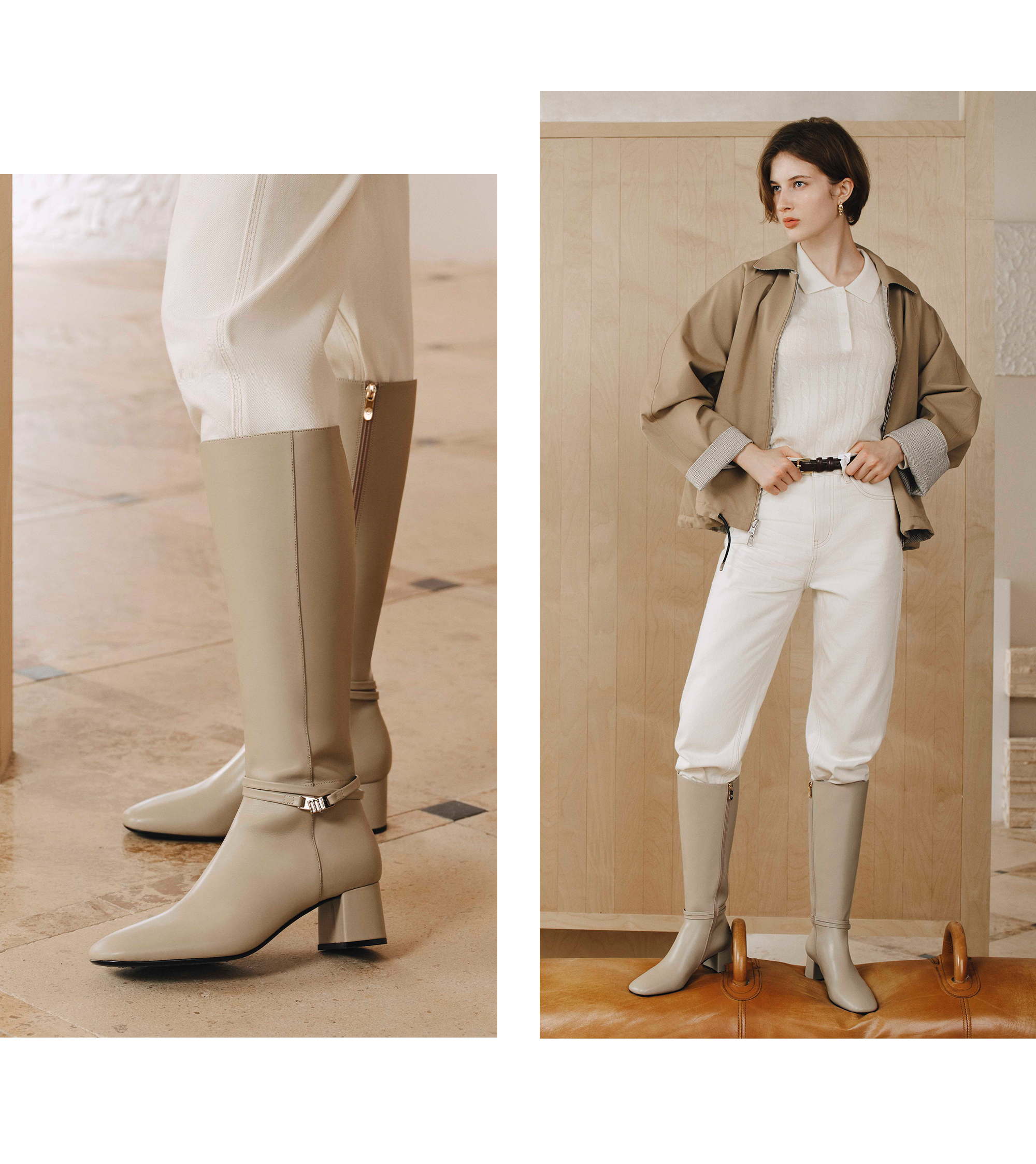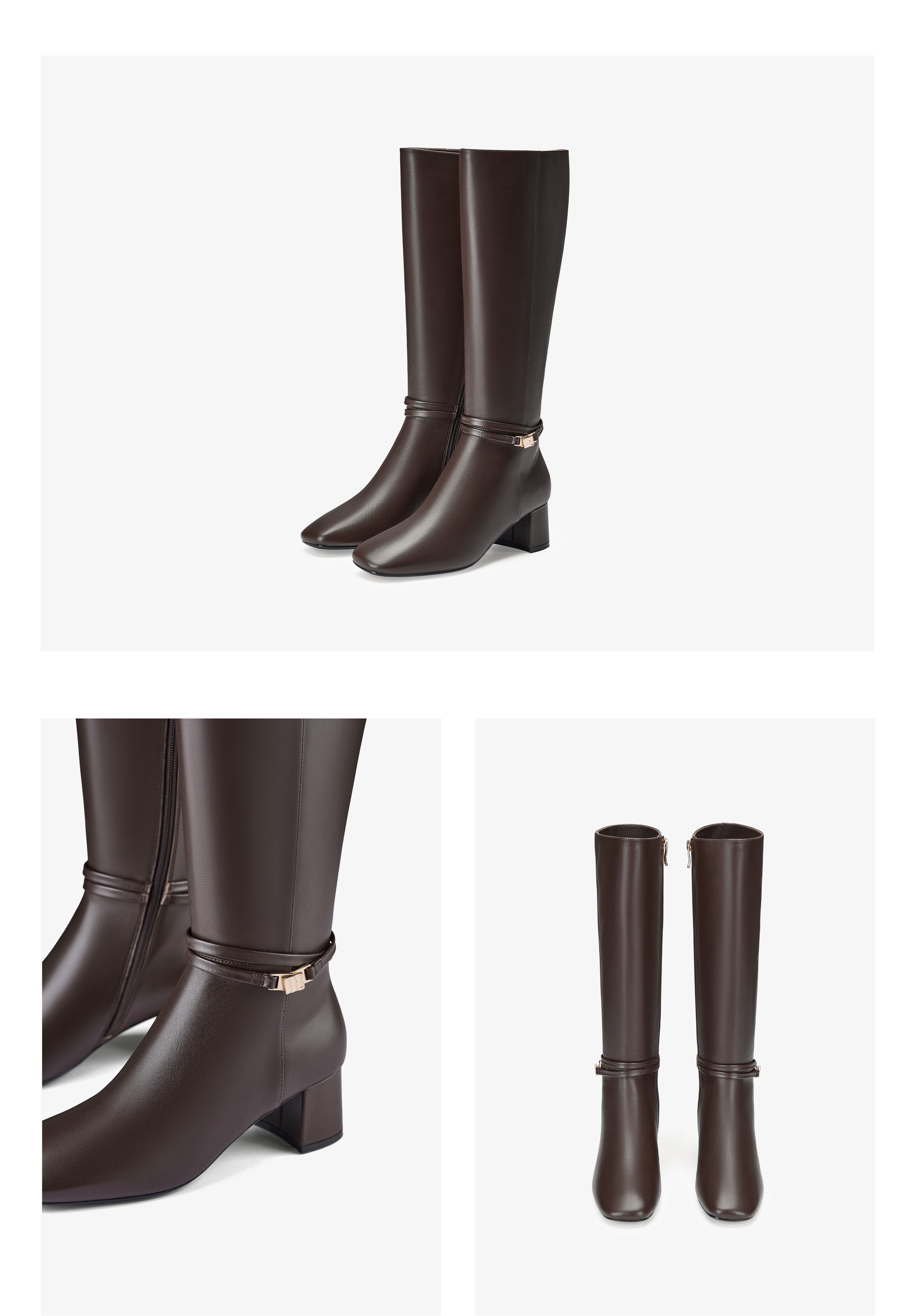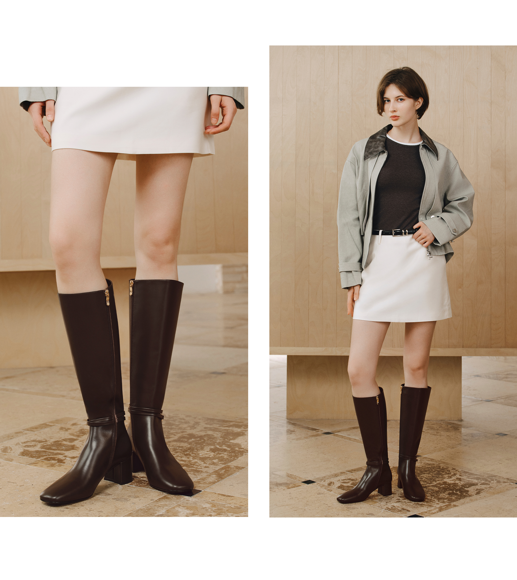 | 风格:休闲 | 鞋面内里材质:猪皮革 | 色系:咖啡色 | 跟高数值:5CM | 筒高数值:38CM |