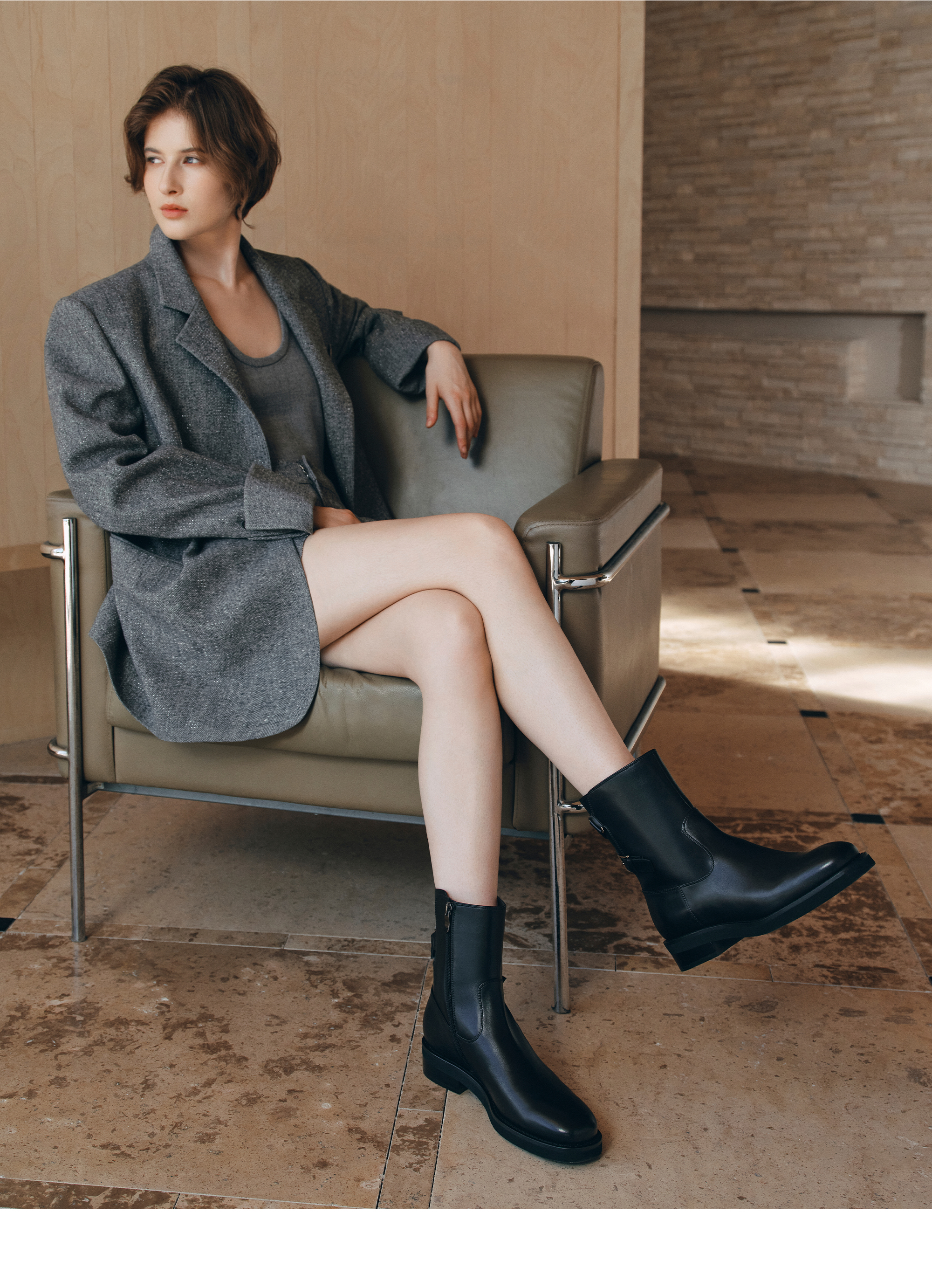 | 帮面材质:牛皮革 | 配跟:无 | 靴筒口围:24CM | 上市时间:2025年冬季 | 鞋类流行款式:弹力靴 |