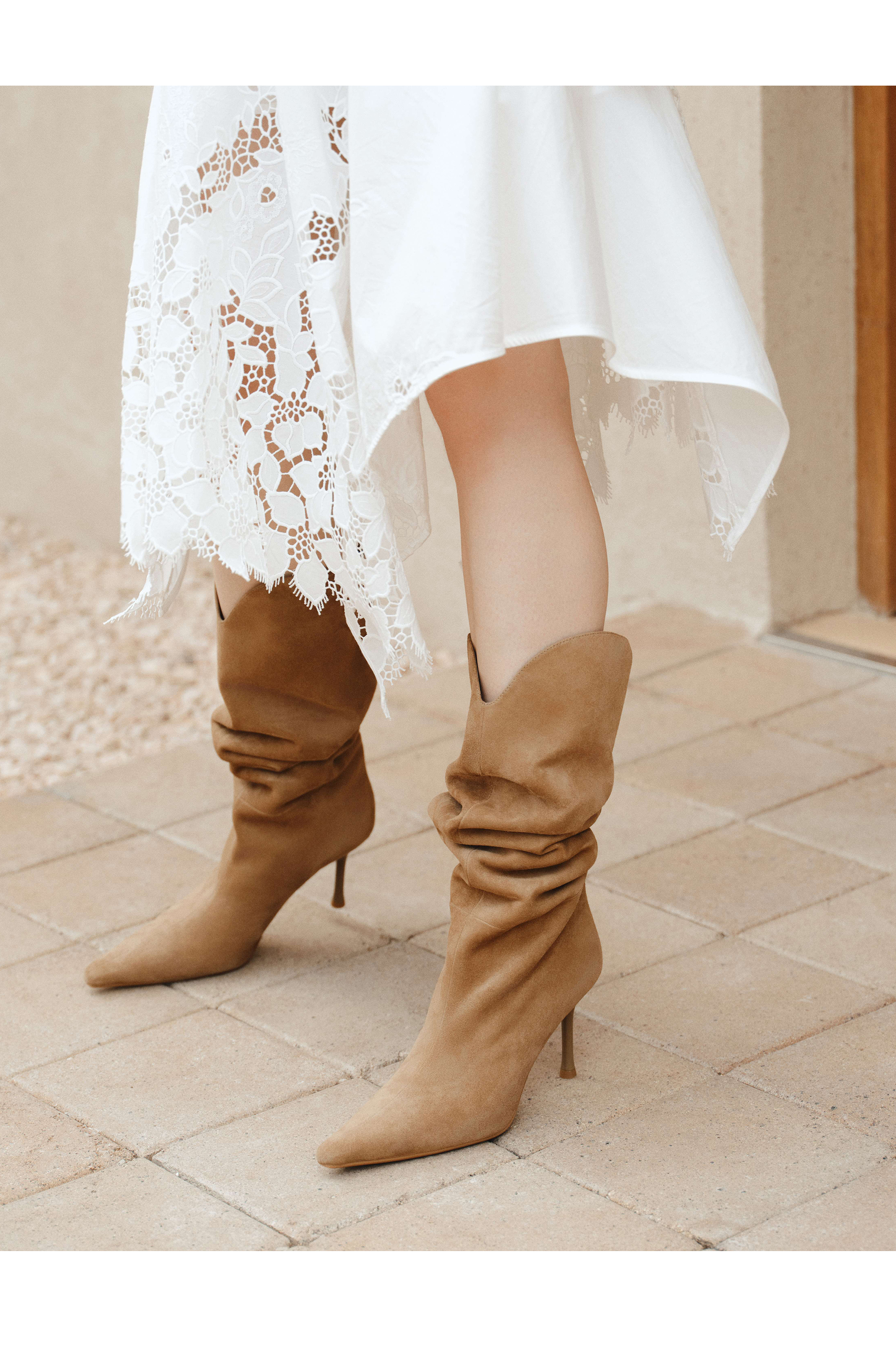 | 风格:休闲 | 鞋面内里材质:猪皮革 | 色系:卡其 | 跟高数值:8CM | 筒高数值:37CM |