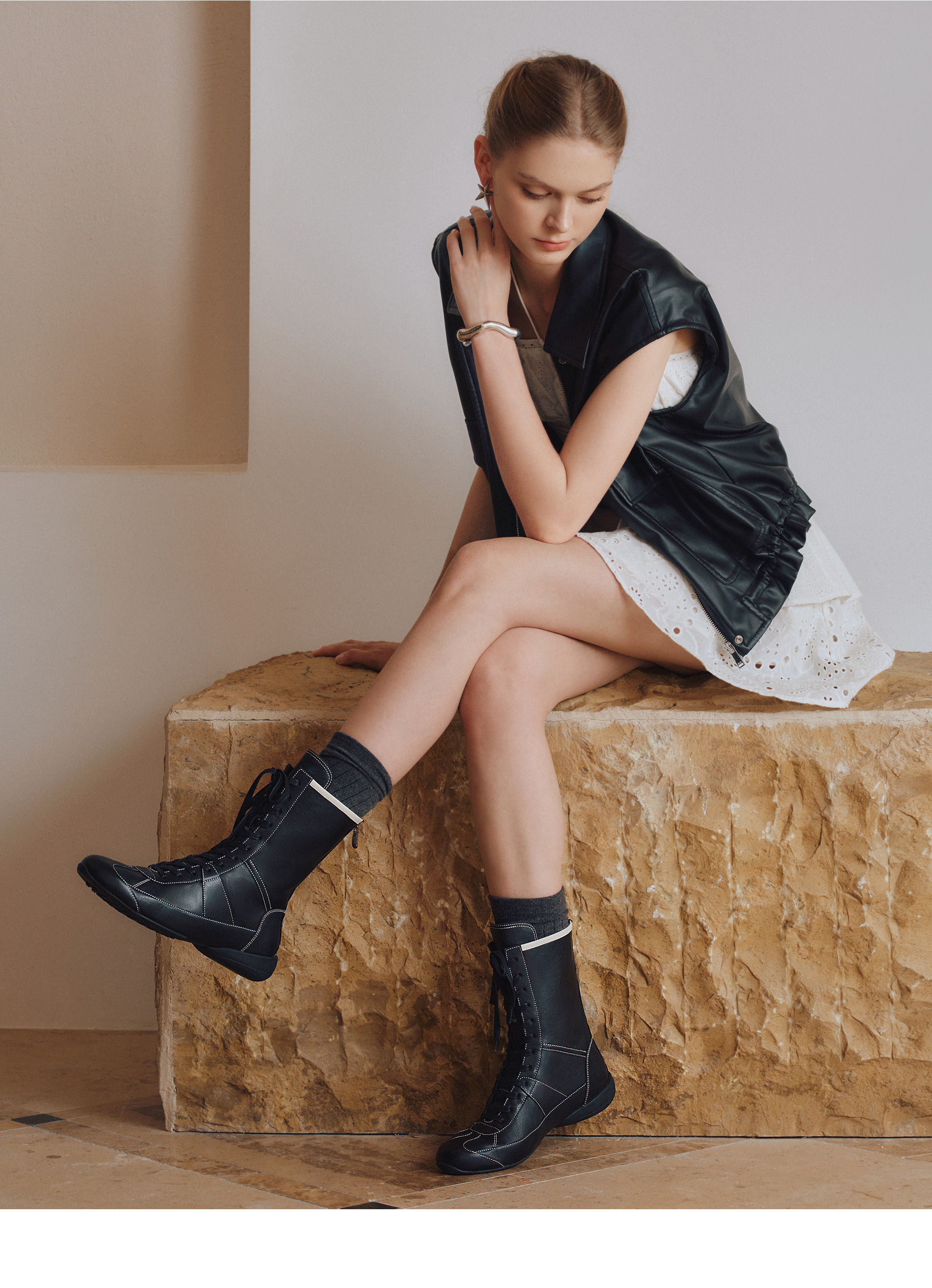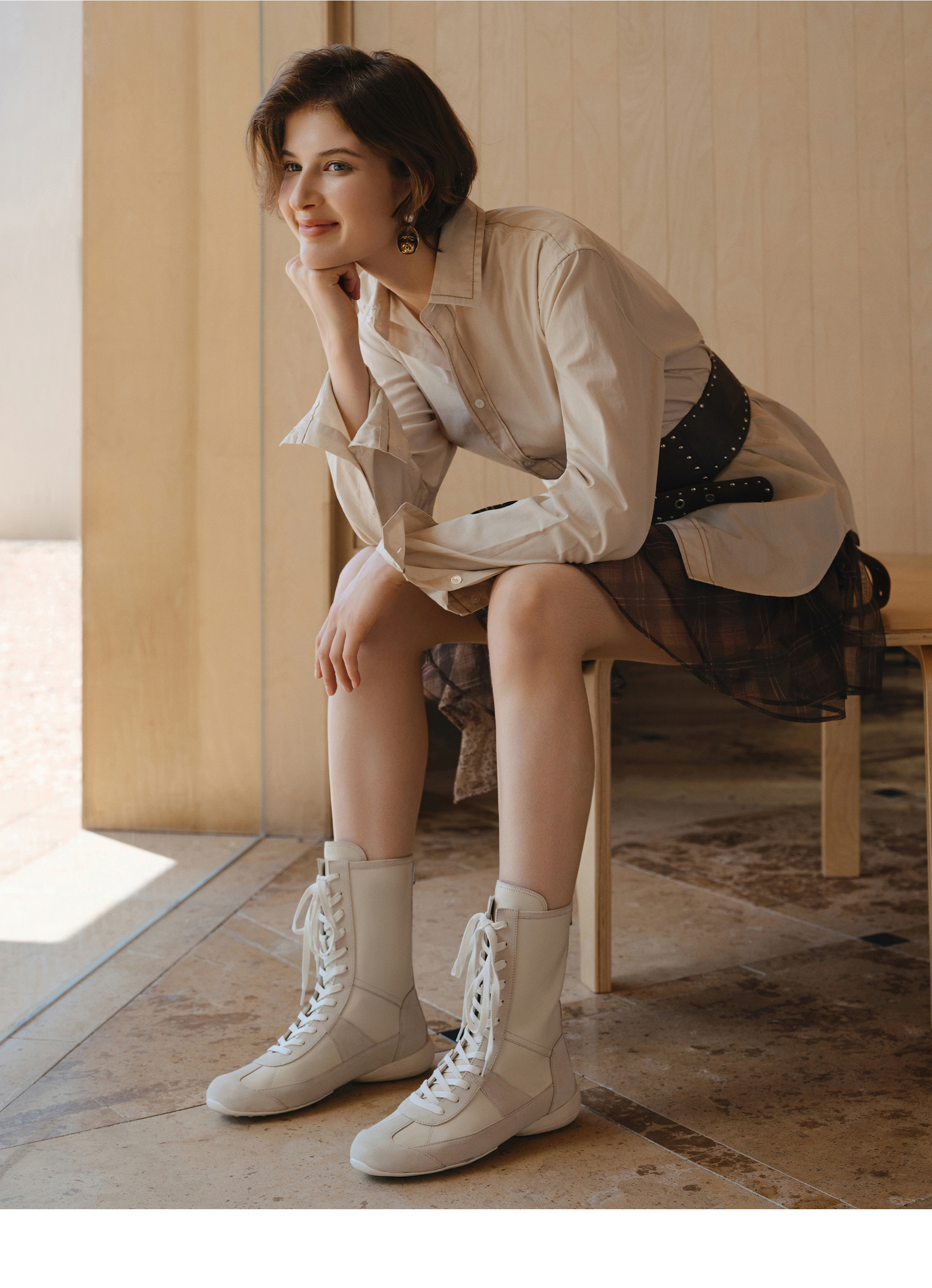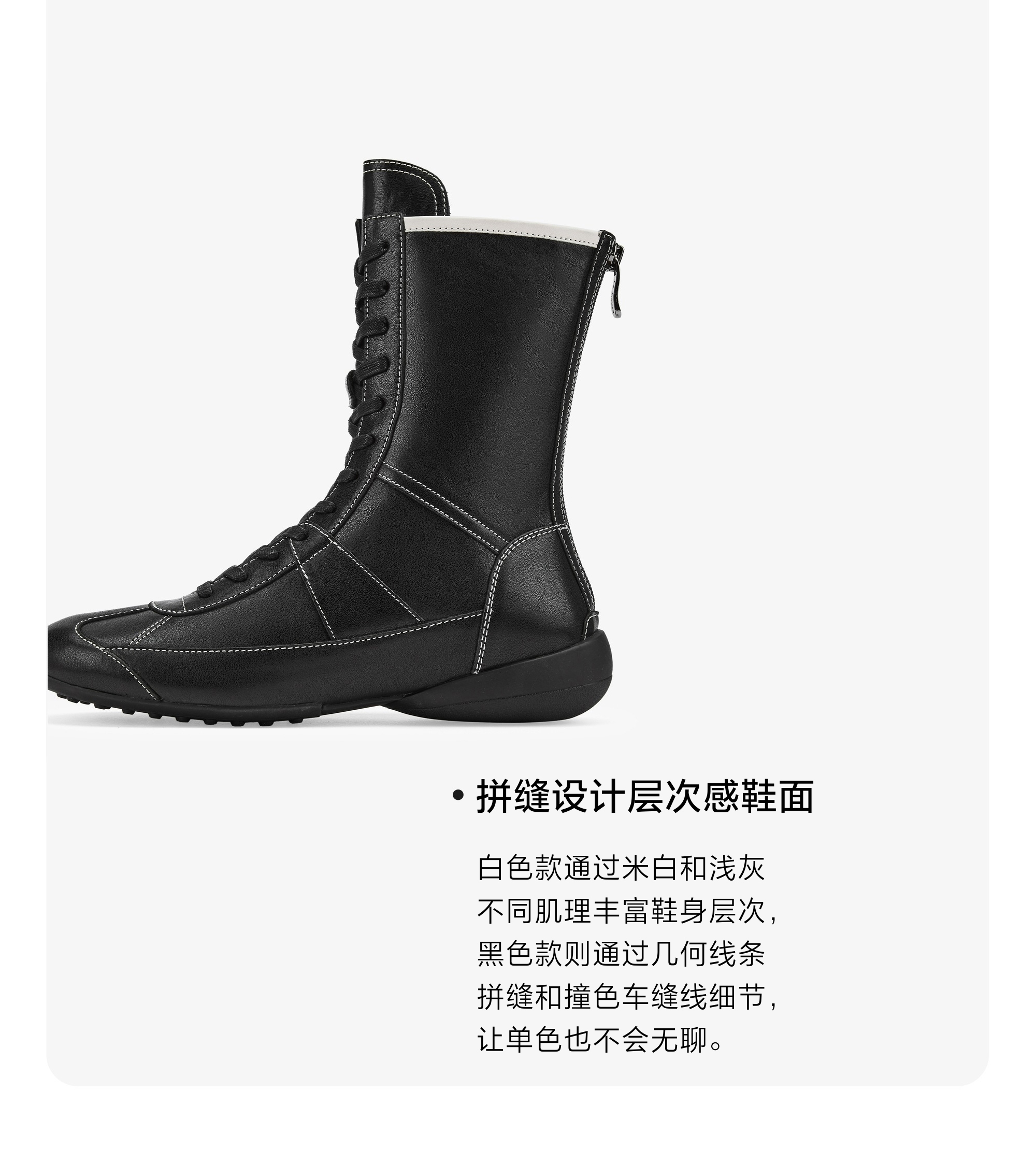 | 鞋底材质:橡胶底 | 靴筒内里材质:织物 | 内增高:无 | 鞋面材质:牛皮革 | 闭合方式:系带 |