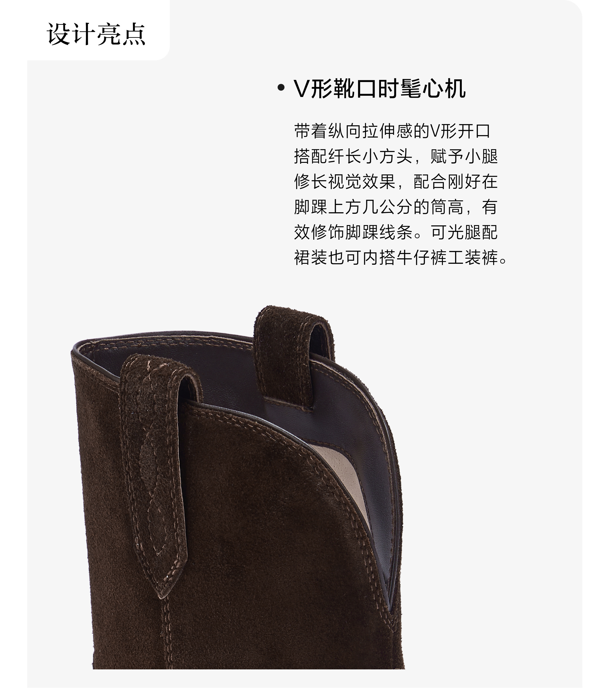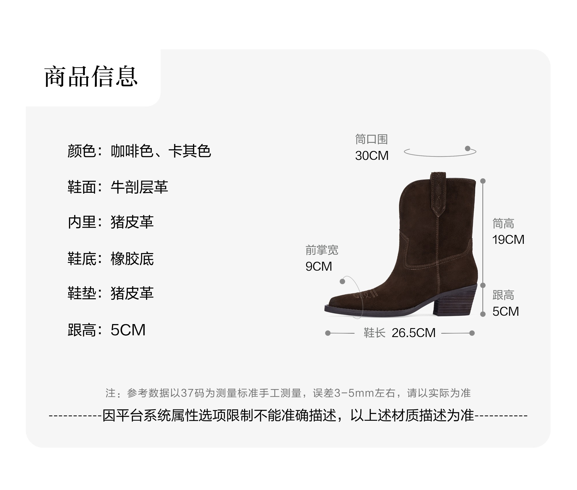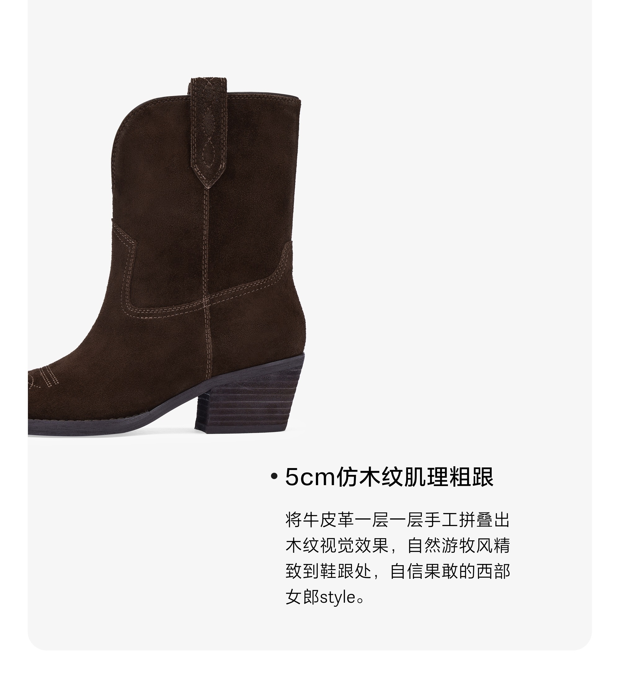 | 帮面材质:牛剖层革 | 配跟:无 | 靴筒口围:30CM | 上市时间:2025年冬季 | 鞋类流行款式:西部靴 |