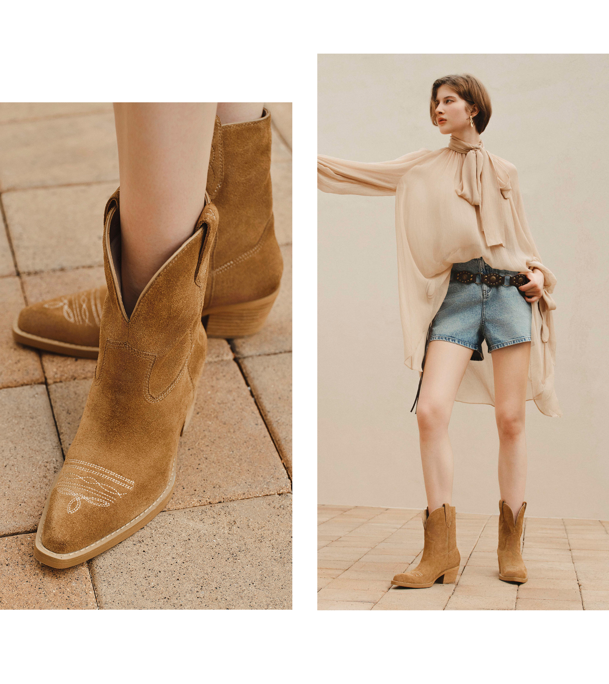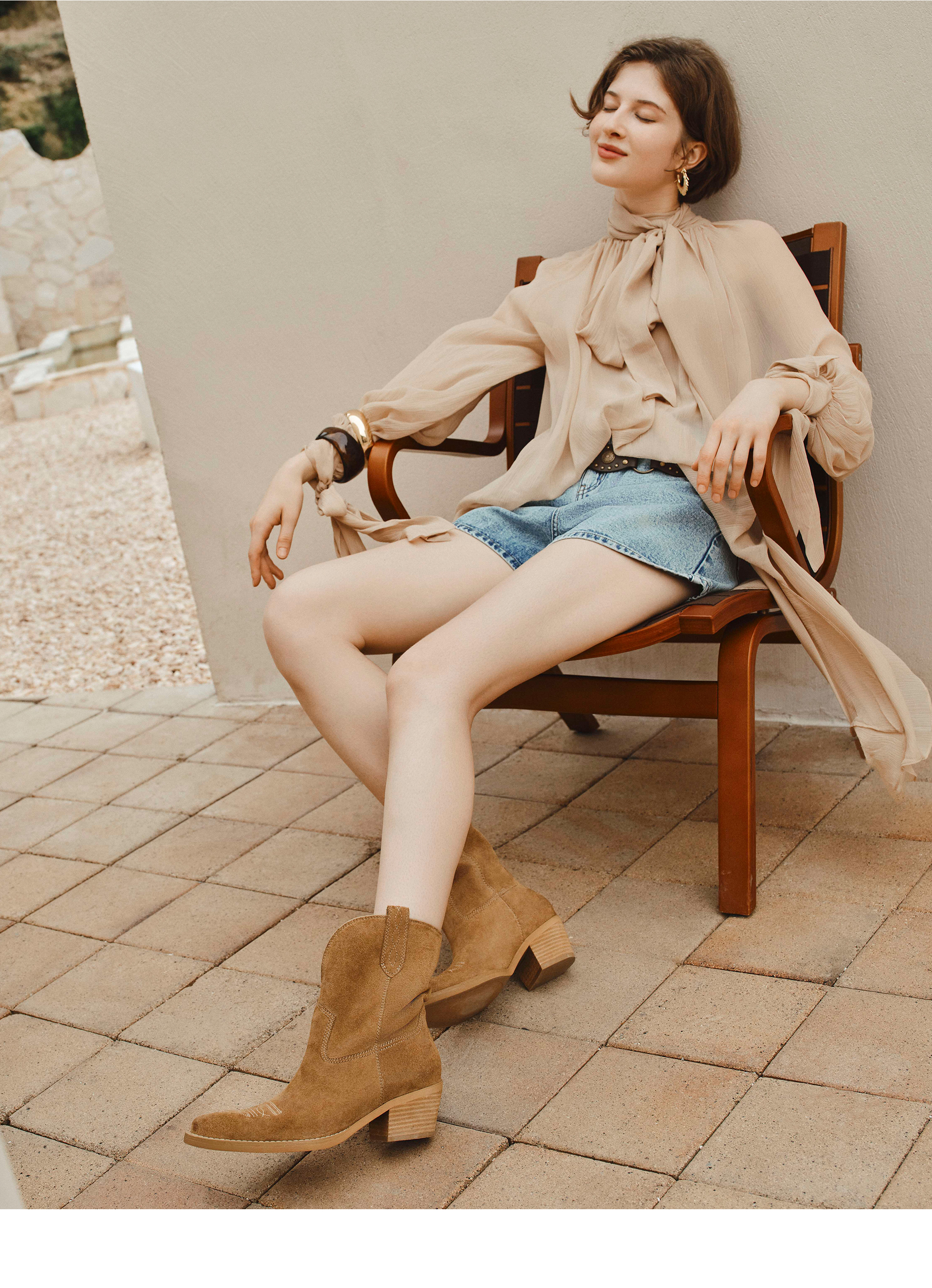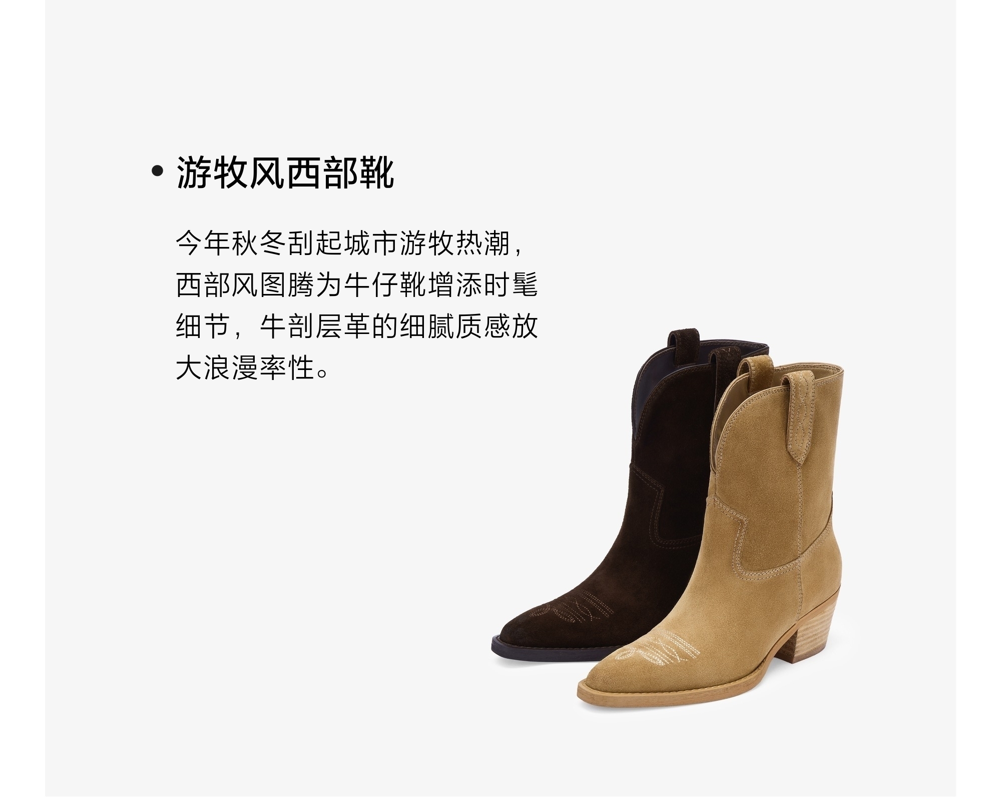| 帮面材质:牛剖层革 | 配跟:无 | 靴筒口围:30CM | 上市时间:2025年冬季 | 鞋类流行款式:西部靴 |