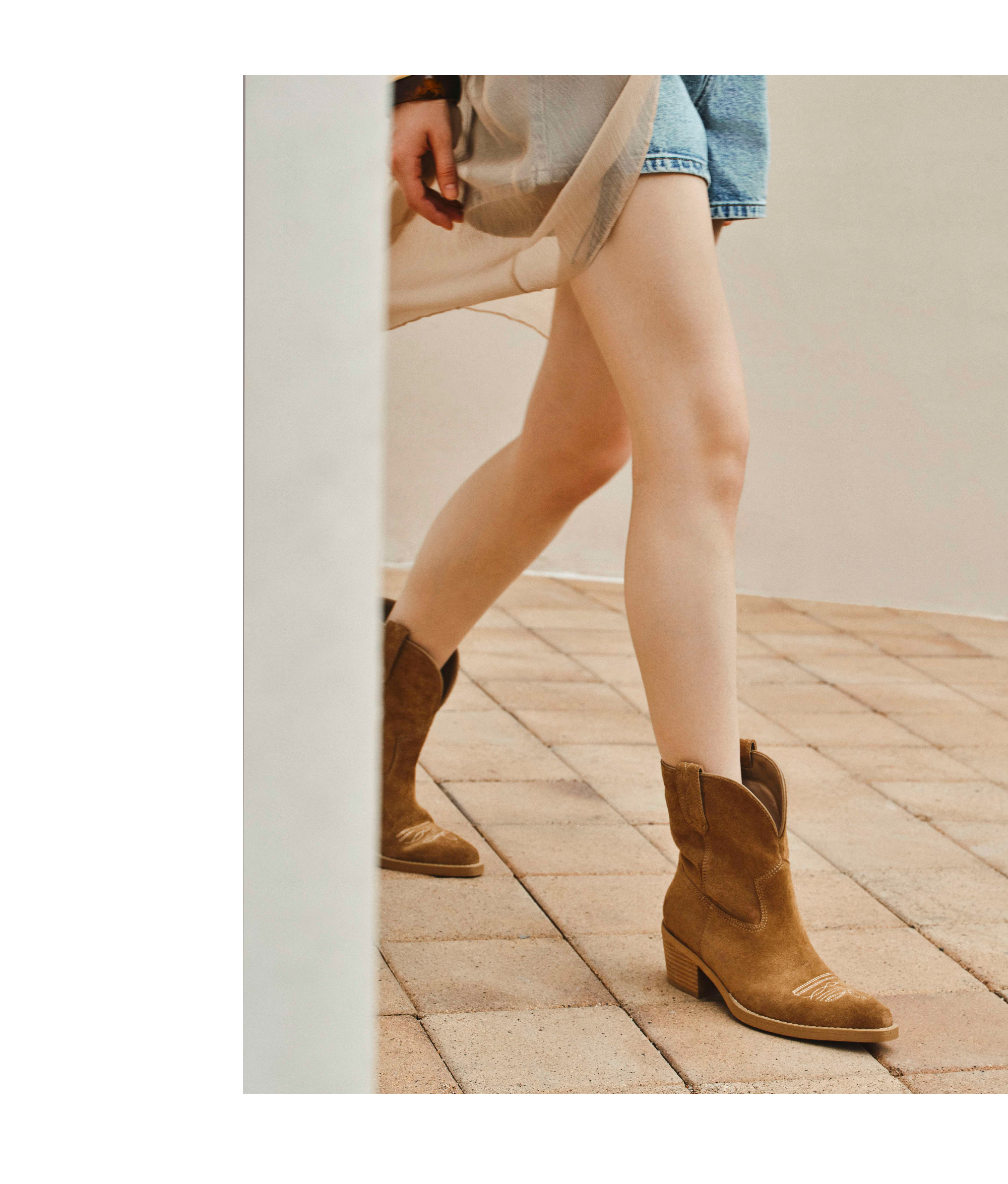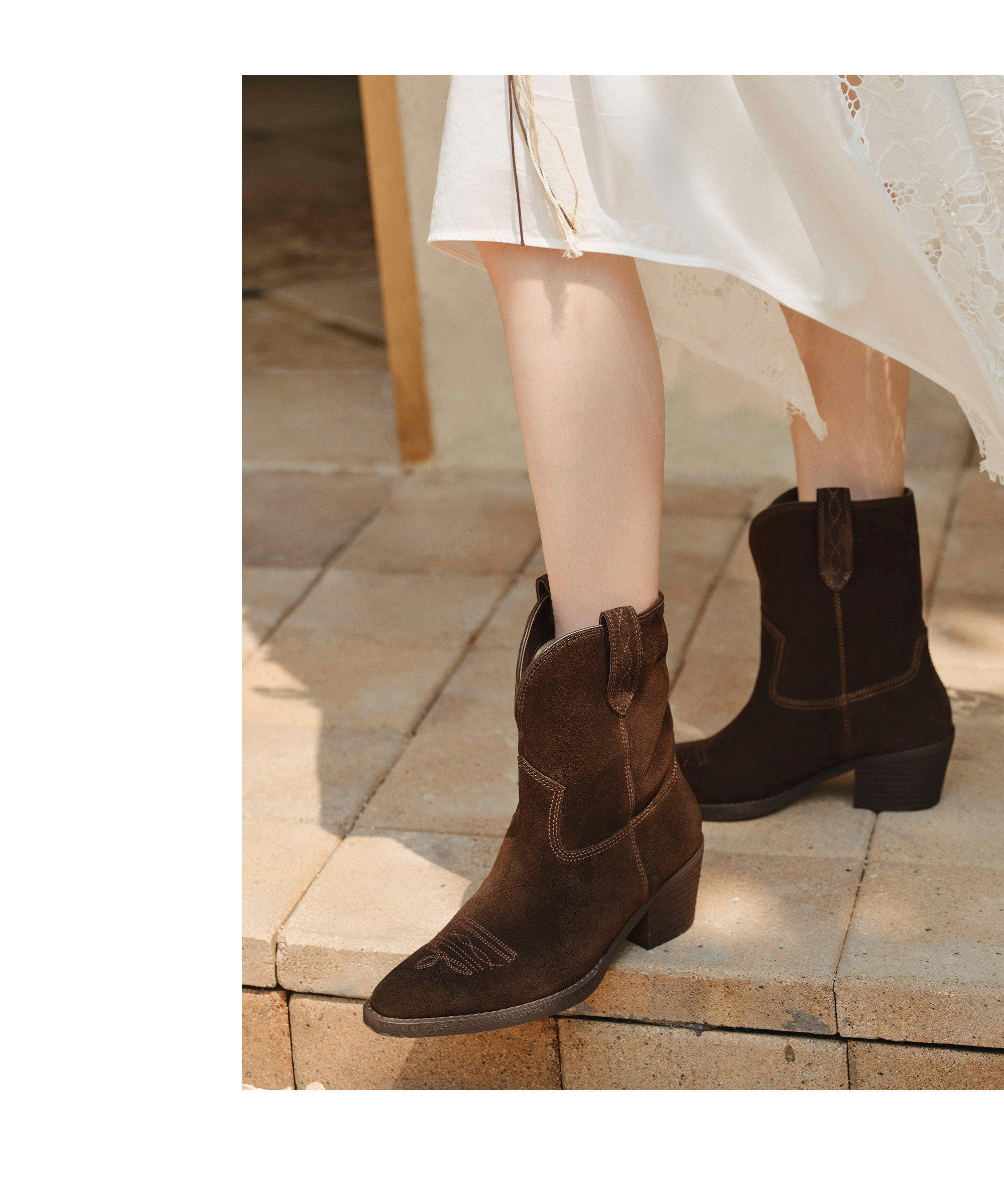 • 73hours女鞋旷野玫瑰2025冬季新品纯色方跟圆头西部靴