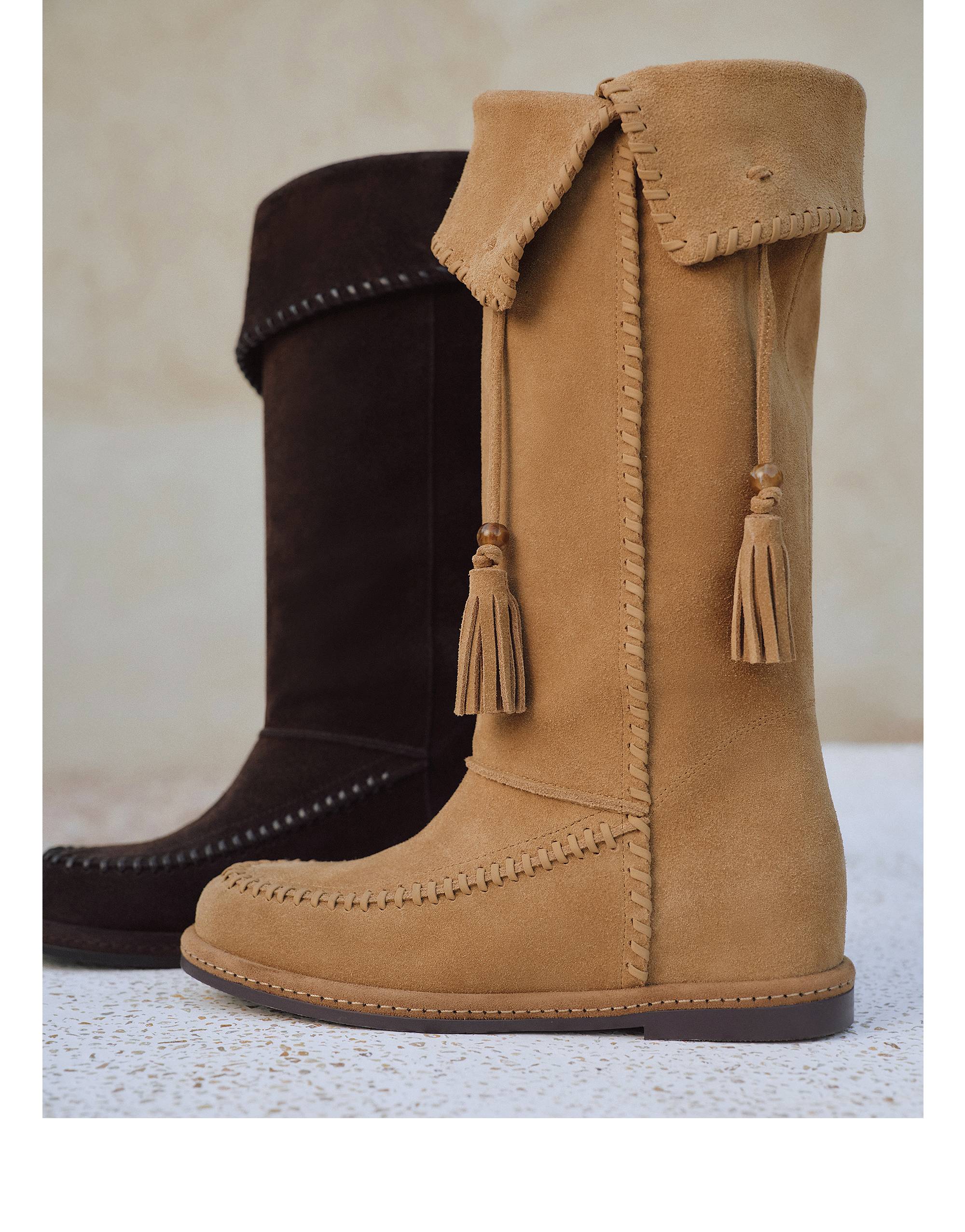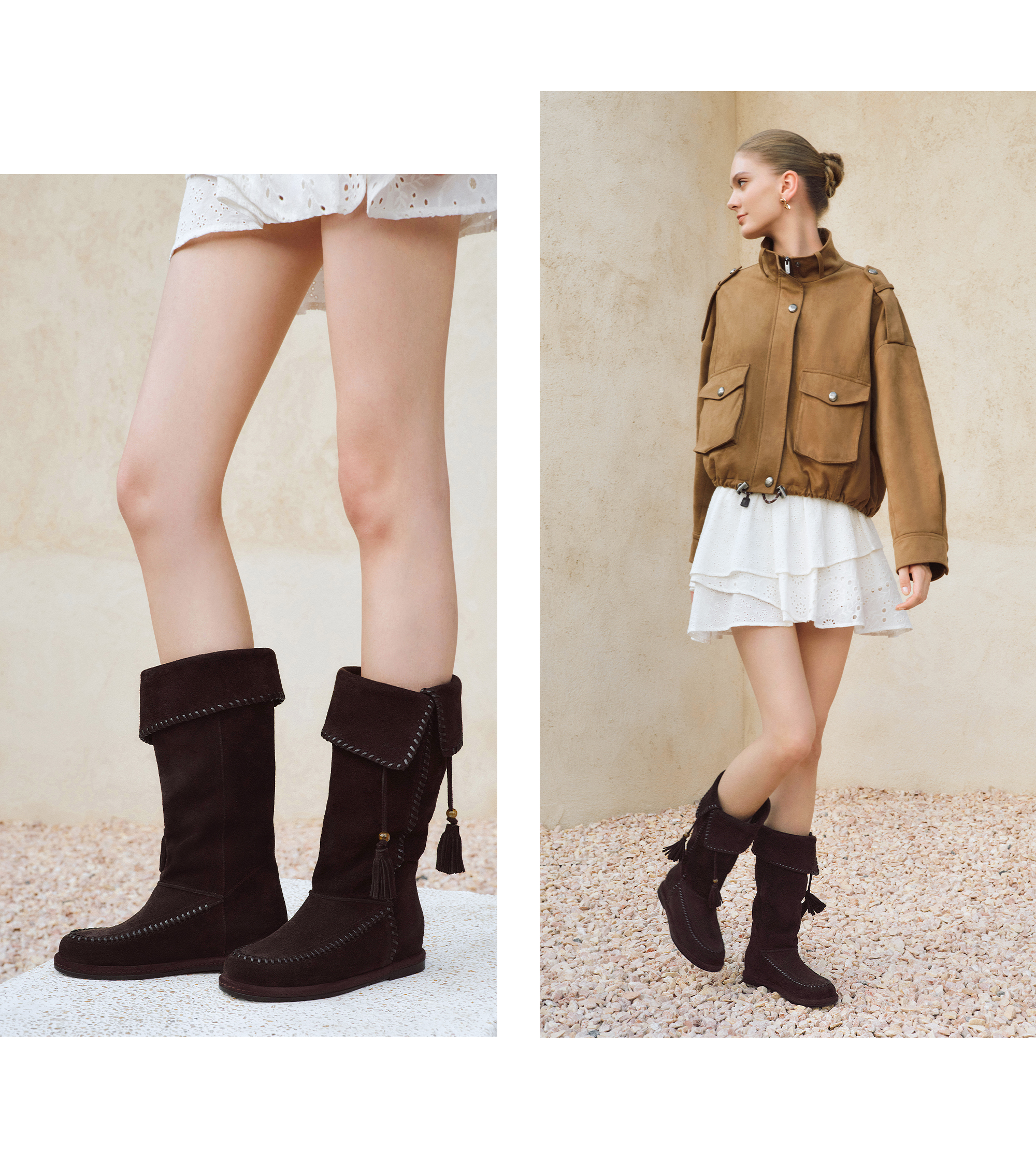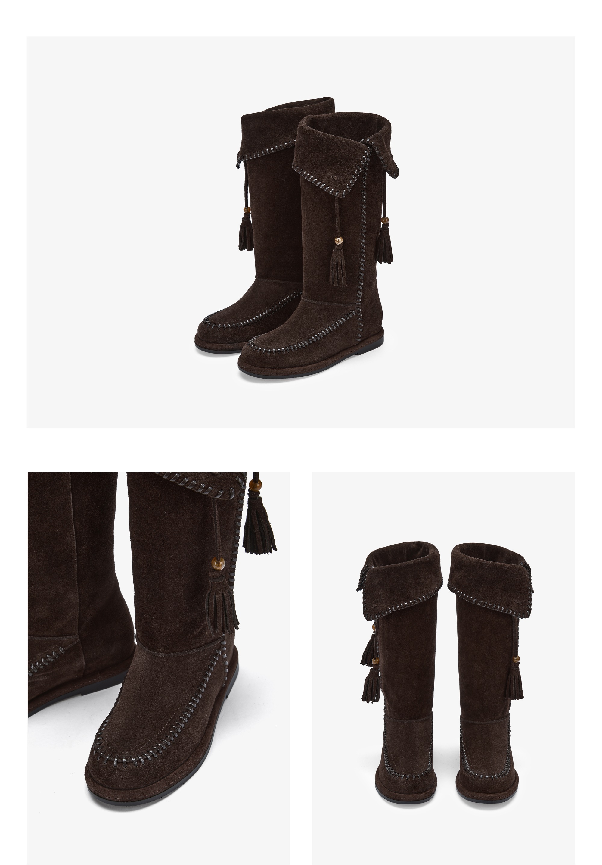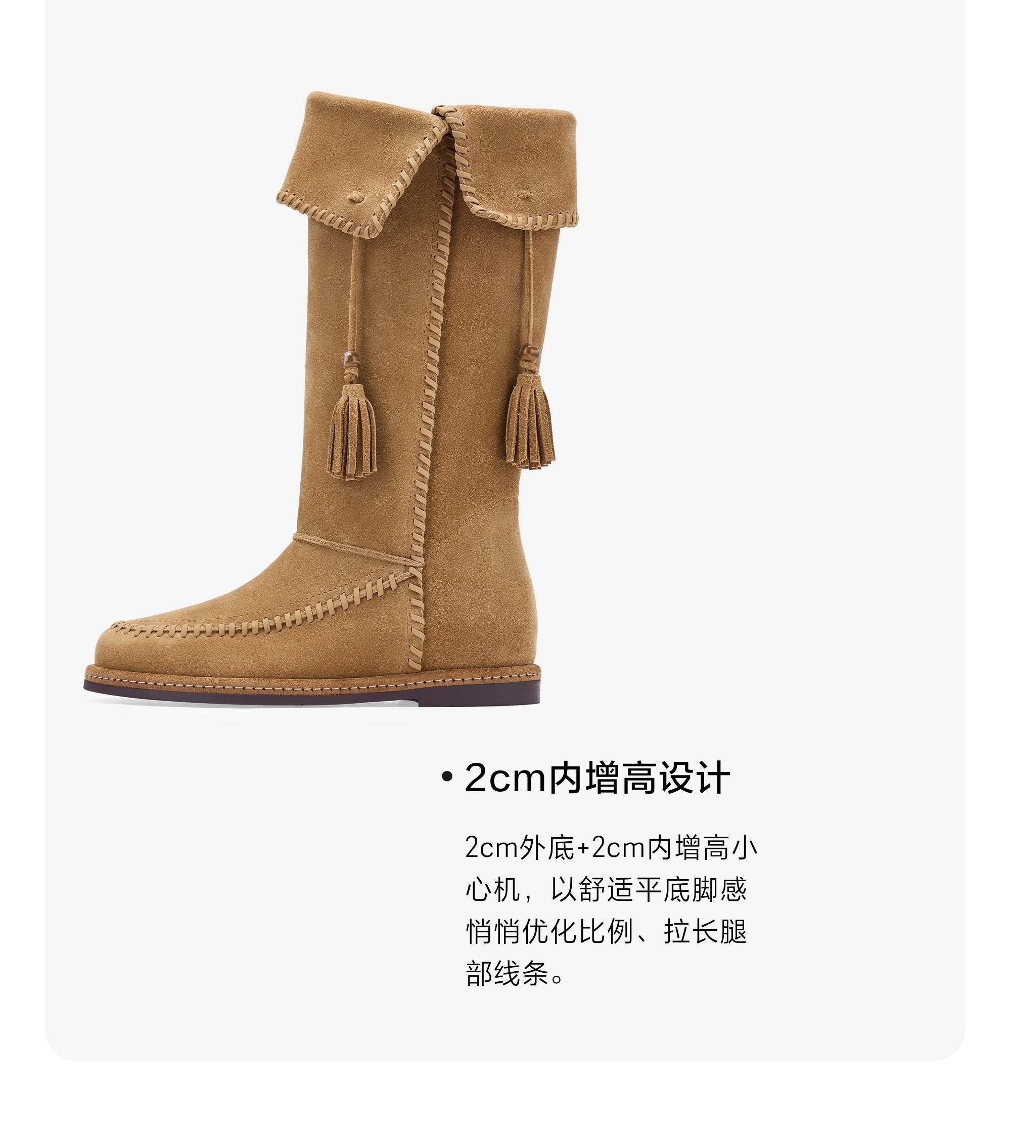 | 鞋面内里材质:猪皮革 | 色系:卡其 | 跟高数值:2CM | 性别:女子 | 靴筒筒面材质:牛剖层革 |