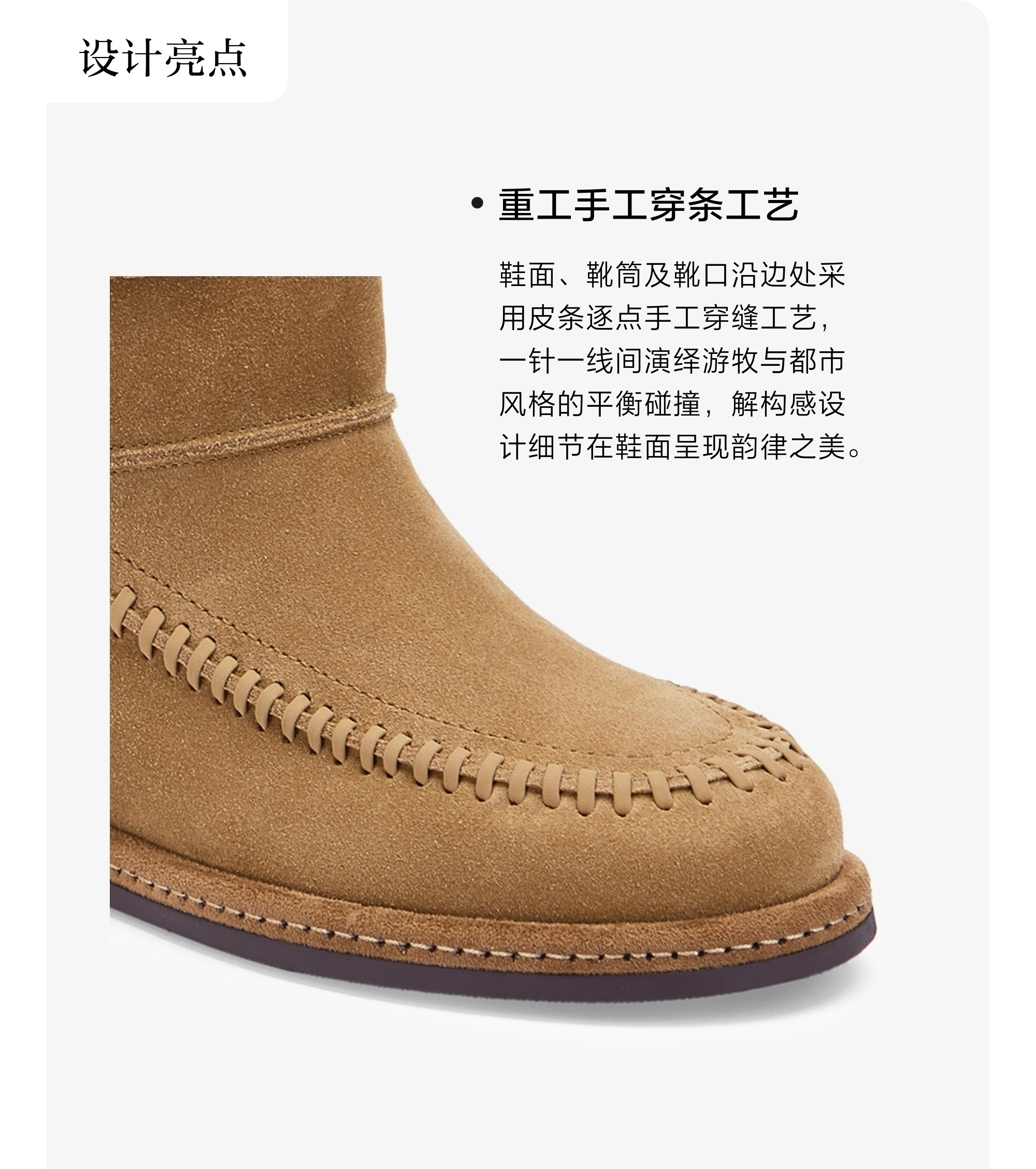 | 鞋底材质:橡胶底 | 靴筒内里材质:猪皮革 | 内增高:无 | 鞋面材质:牛剖层革 | 闭合方式:套筒 |