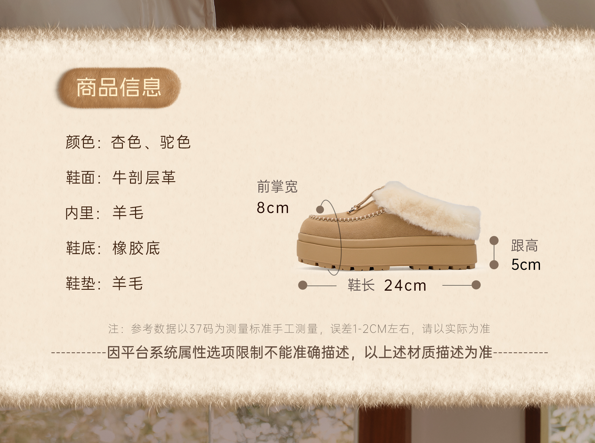 | 跟高数值:5CM | 配跟:无 | 性别:女子 | 里料材质:羊毛 | 上市时间:2025年秋季 |