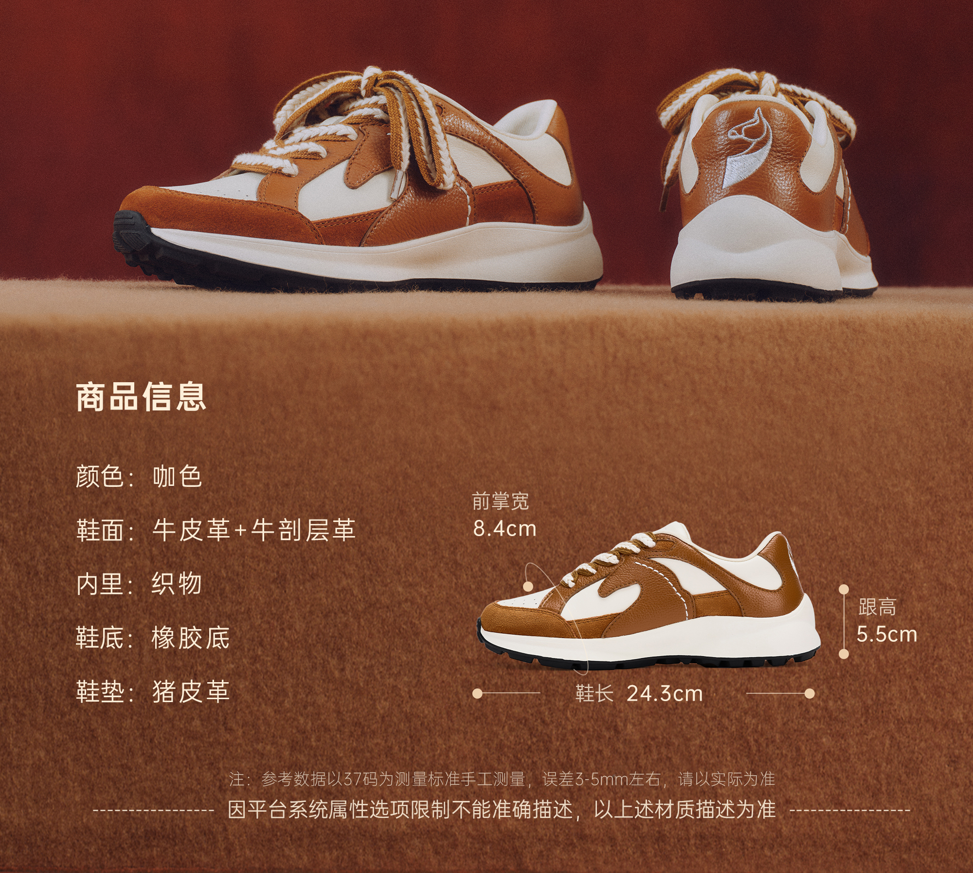 | 鞋帮:低帮 | 鞋底材质:橡胶底 | 内增高:无 | 鞋面材质:牛皮革 | 闭合方式:系带 |