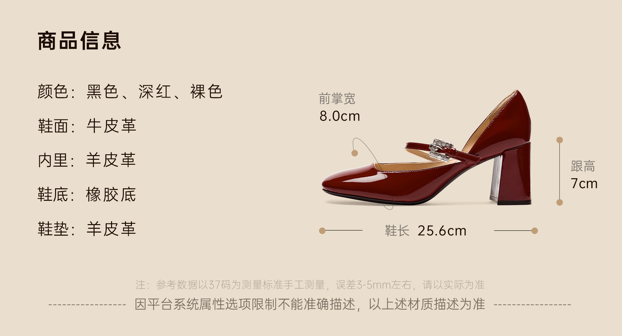 | 上市时间:2026年春季 | 鞋类流行款式:浅口鞋 | 鞋头款式:圆头 | 鞋面图案:纯色 | 鞋跟形状:方跟 |