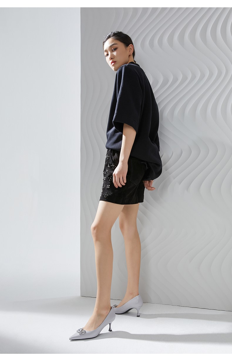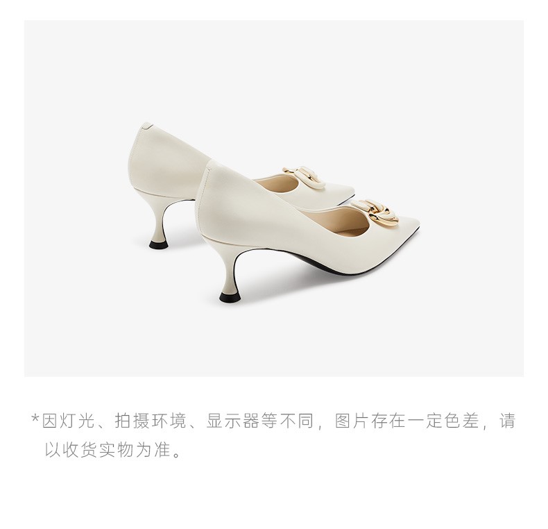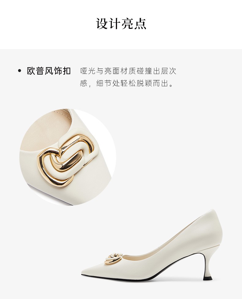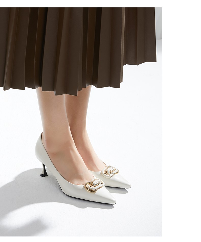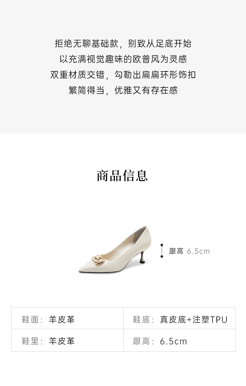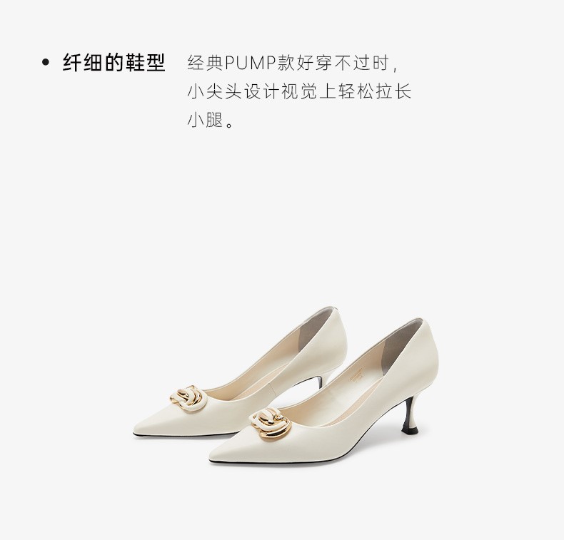 | 鞋头款式:尖头 | 鞋底材质:橡胶底 | 鞋面图案:纯色 | 鞋跟形状:细跟 | 鞋面材质:羊皮革 |