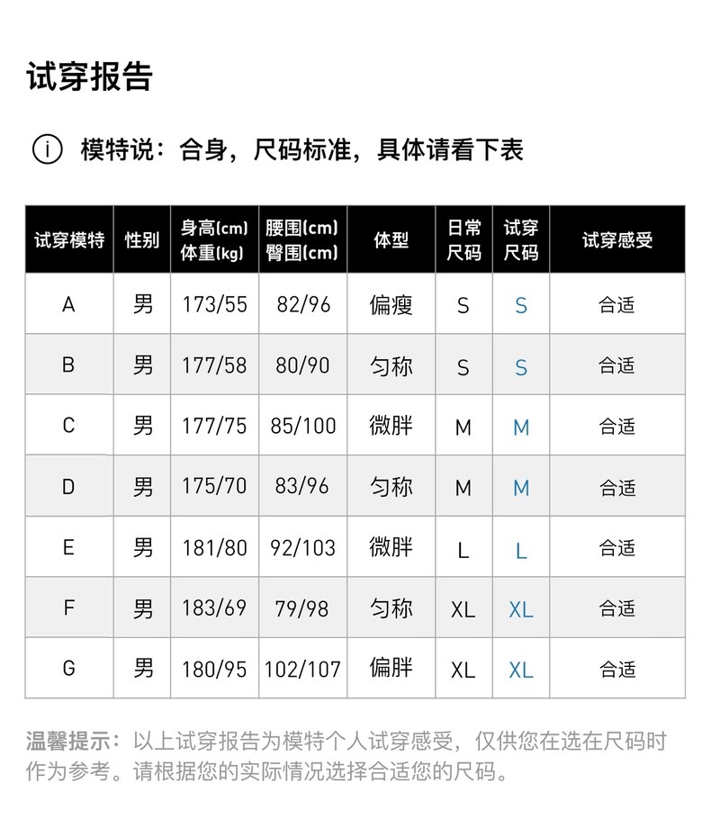 下装尺码 170/72A 175/76A 175/80A 180/86A 185/90A 185/96A 190/100A