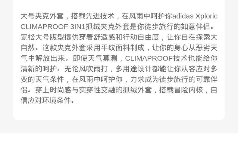 • adidas阿迪达斯2025男子XPL FLC 3IN1三合一外套JV8688