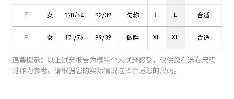 下装尺码 155/64A 160/68A 165/72A 170/76A 170/80A 175/84A