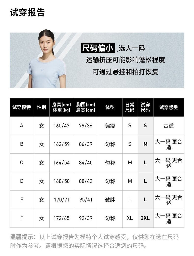 | 腰围 | 63.8 | 66.8 | 71.3 | 75.8 | 80.3 | 84.5 |