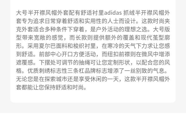 • adidas阿迪达斯2026女子FLEECE ANORAK针织无帽外套HY2122