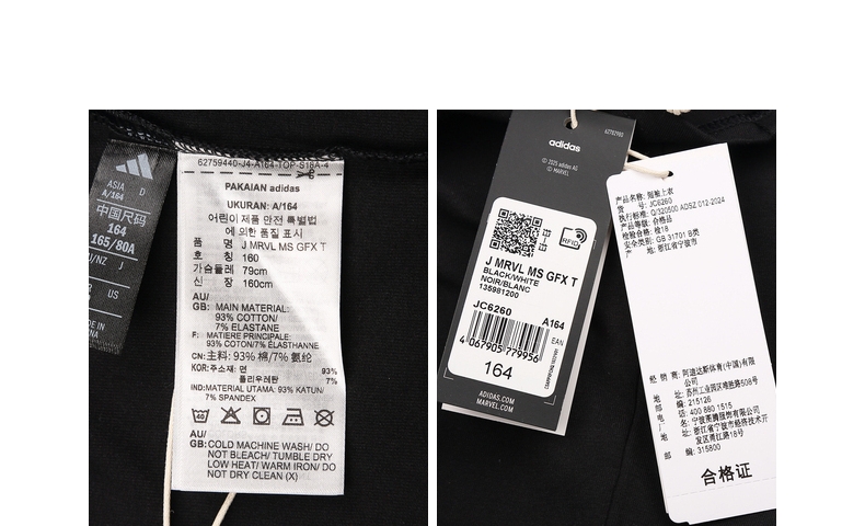 adidas kids阿迪达斯小童2025男大童J MRVL MS GFX T针织无领短TJC6260