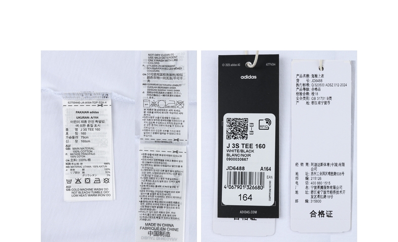 • adidas阿迪达斯2025男大童J 3S TEE 160针织无领短TJD6488