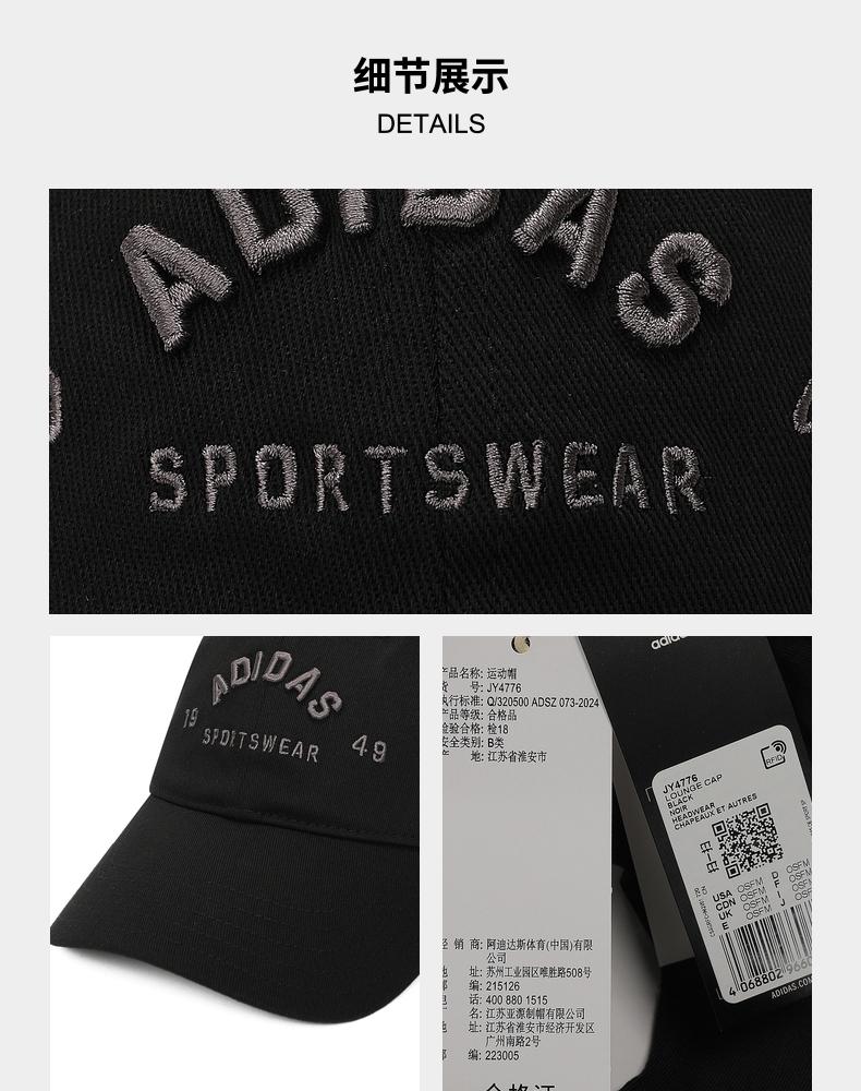 • adidas阿迪达斯2025中性LOUNGE CAP弯沿帽JY4776