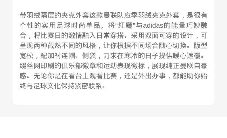 • adidas阿迪达斯2025男子MUFC SZN DW JK厚羽绒服-短JN2890