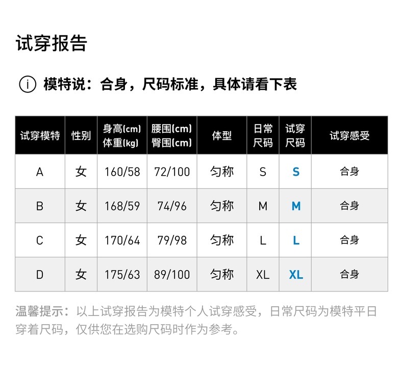 | 下装尺码 | 155/64A | 160/68A | 165/72A | 170/76A | 170/80A | 175/84A |