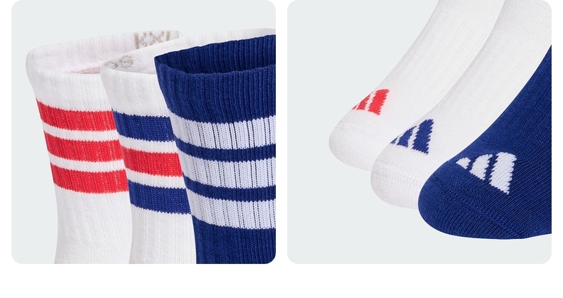 • Adidas Kids阿迪儿童2026男小童3S KD C CRW 3P中袜优惠装KF0153