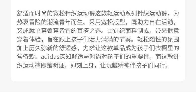 • Adidas Kids阿迪儿童2025女大童JG KN PANT针织长裤KG5939