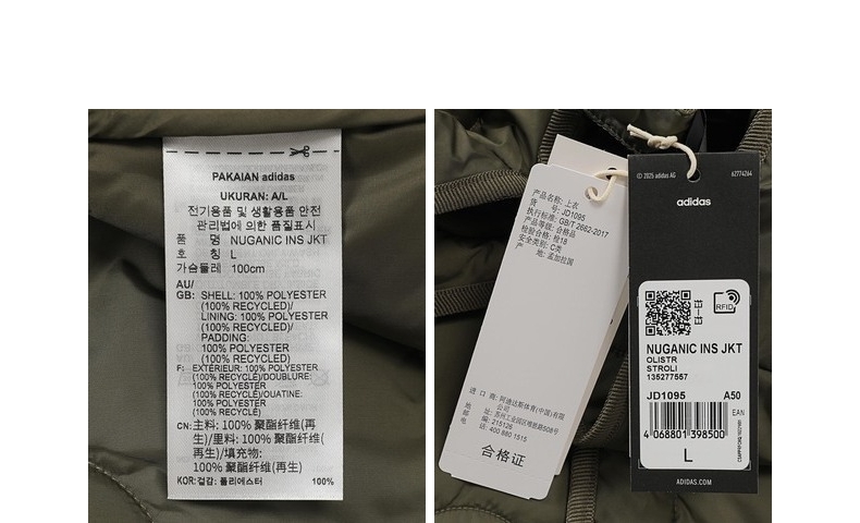 adidas阿迪达斯2025男子NUGANIC INS JKT薄棉服JD1095
