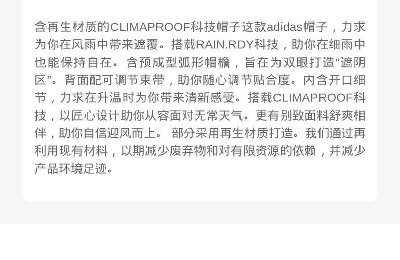• adidas阿迪达斯2025中性TECH 3P CLIMA弯沿帽JE5654