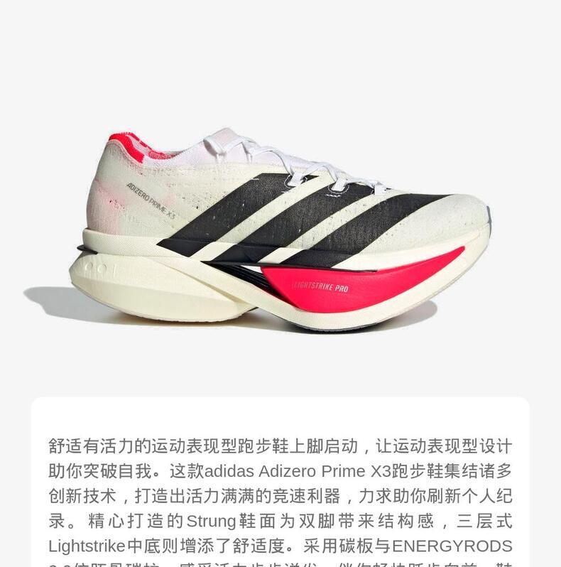• adidas阿迪达斯2025中性ADIZERO PRIME X3 STRUNG跑步竞技JR2597