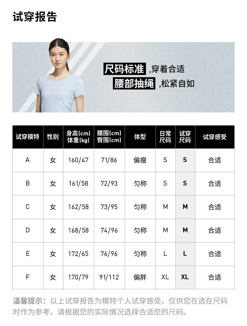 | 下装尺码 | 155/64A | 160/68A | 165/72A | 170/76A | 170/80A | 175/84A |