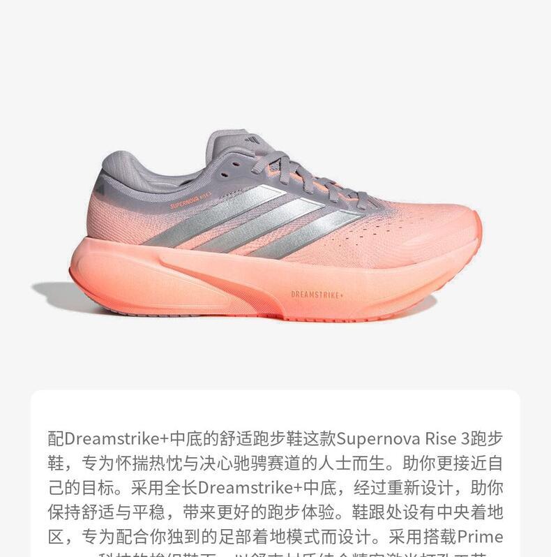 • adidas阿迪达斯2026女子SUPERNOVA RISE 3 W跑步常规JR7372