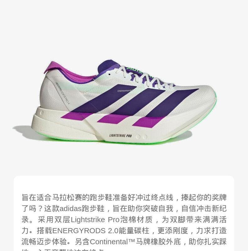 • adidas阿迪达斯2025男子ADIZERO ADIOS PRO 4 M跑步竞技JR1656