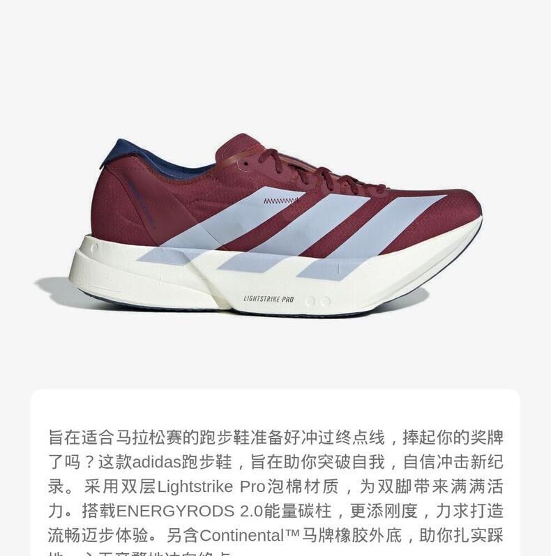 • adidas阿迪达斯2025男子ADIZERO ADIOS PRO 4 M跑步竞技JR1245