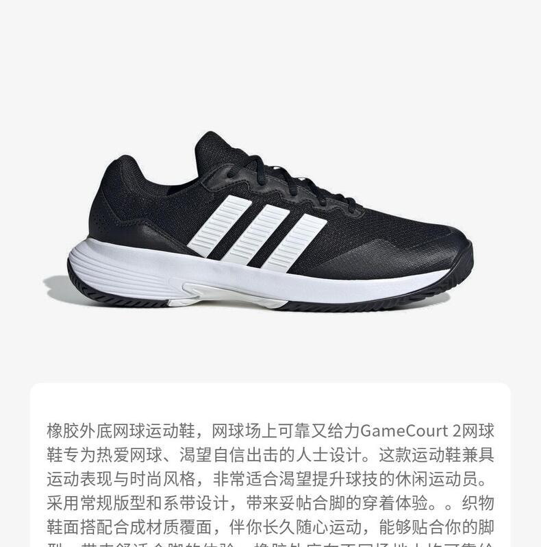 • adidas阿迪达斯2026男子GameCourt 2 M网球常规KI0780