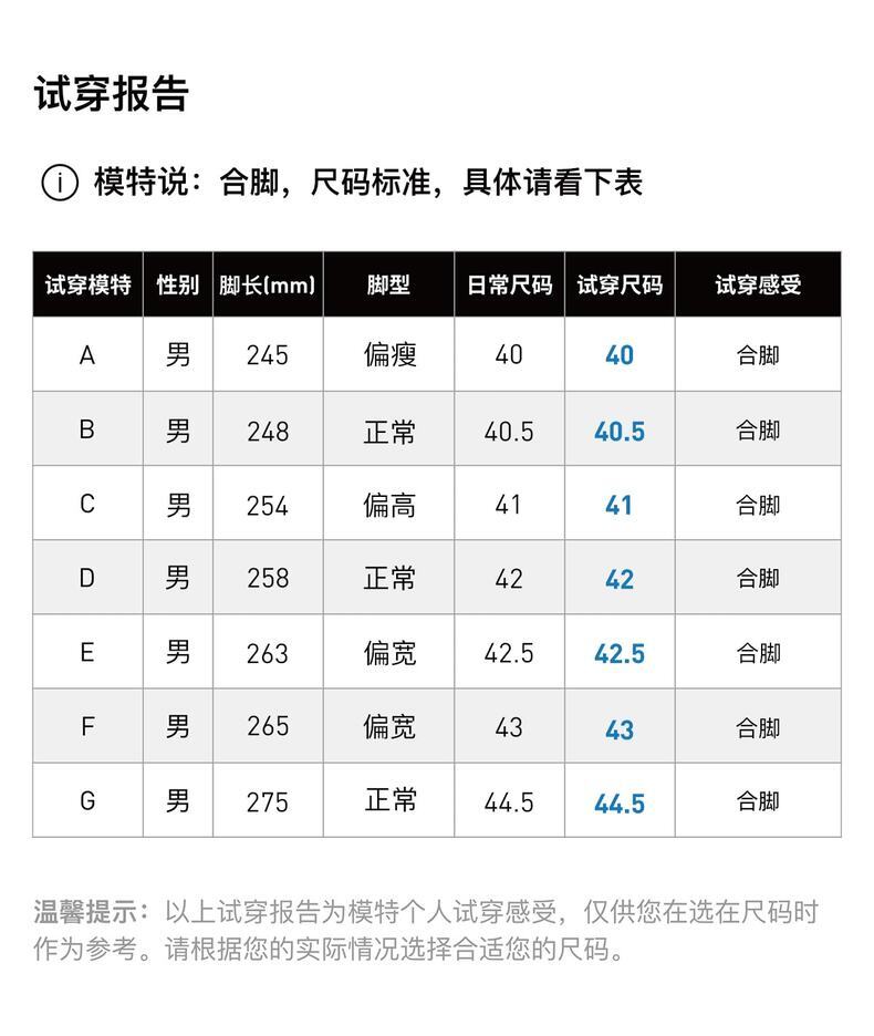 | 中国码(CHN) | 21.5 | 22 | 22.5 | 23 | 23.5 | 23.5 | 24 | 24.5 | 25 | 25.5 | 26 | 26.5 | 26.5 | 27 | 27.5 | 28 | 28.5 | 29 | 29 |