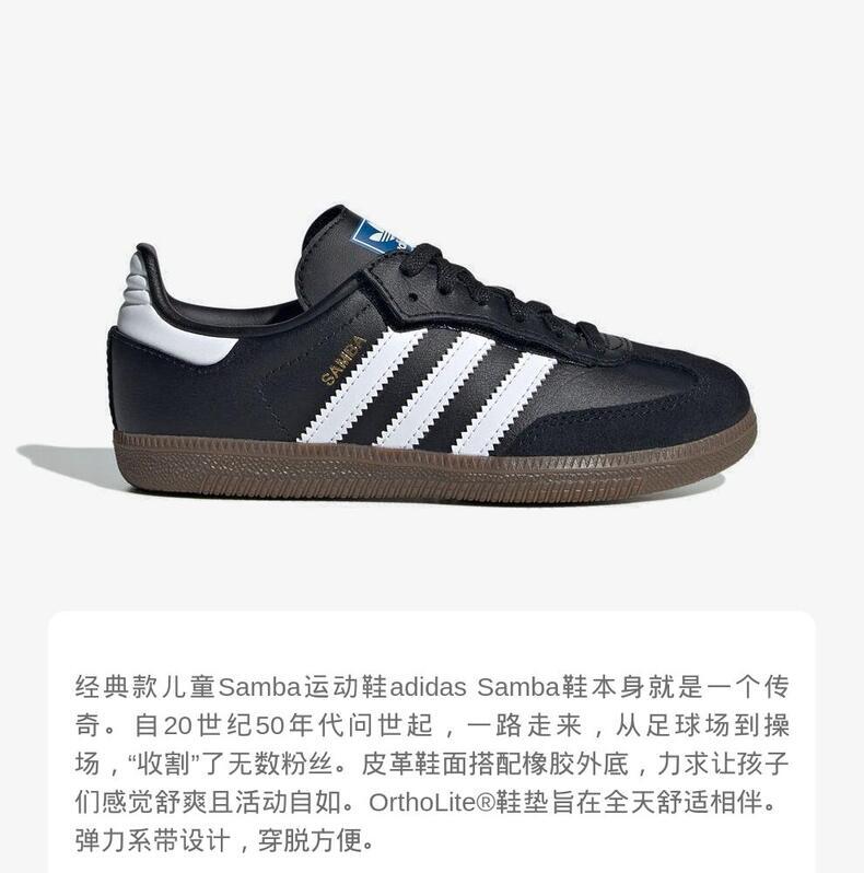• adidas阿迪达斯2025男小童SAMBA OG CF EL C三叶草童装JQ6390