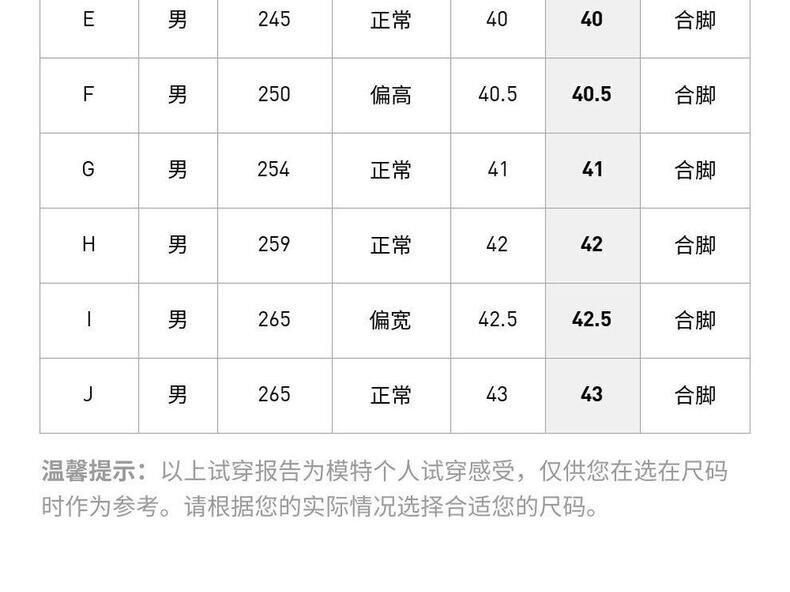 | 中国码(CHN) | 21.5 | 22 | 22.5 | 23 | 23.5 | 23.5 | 24 | 24.5 | 25 | 25.5 | 26 | 26.5 | 26.5 | 27 | 27.5 | 28 | 28.5 | 29 | 29 |