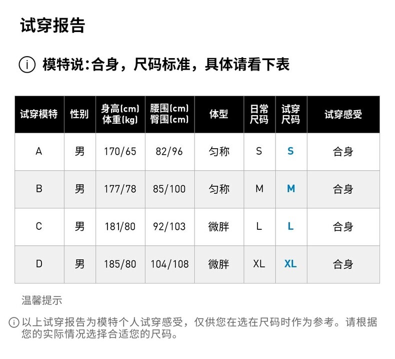 下装尺码 170/72A 175/76A 175/80A 180/86A 185/90A 185/96A 190/100A