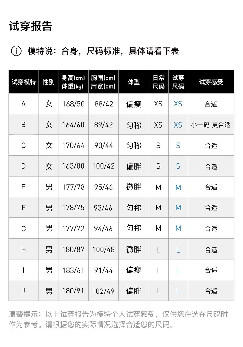 | 身高 | 170 | 174 | 177 | 180 | 183 | 186 | 189 |