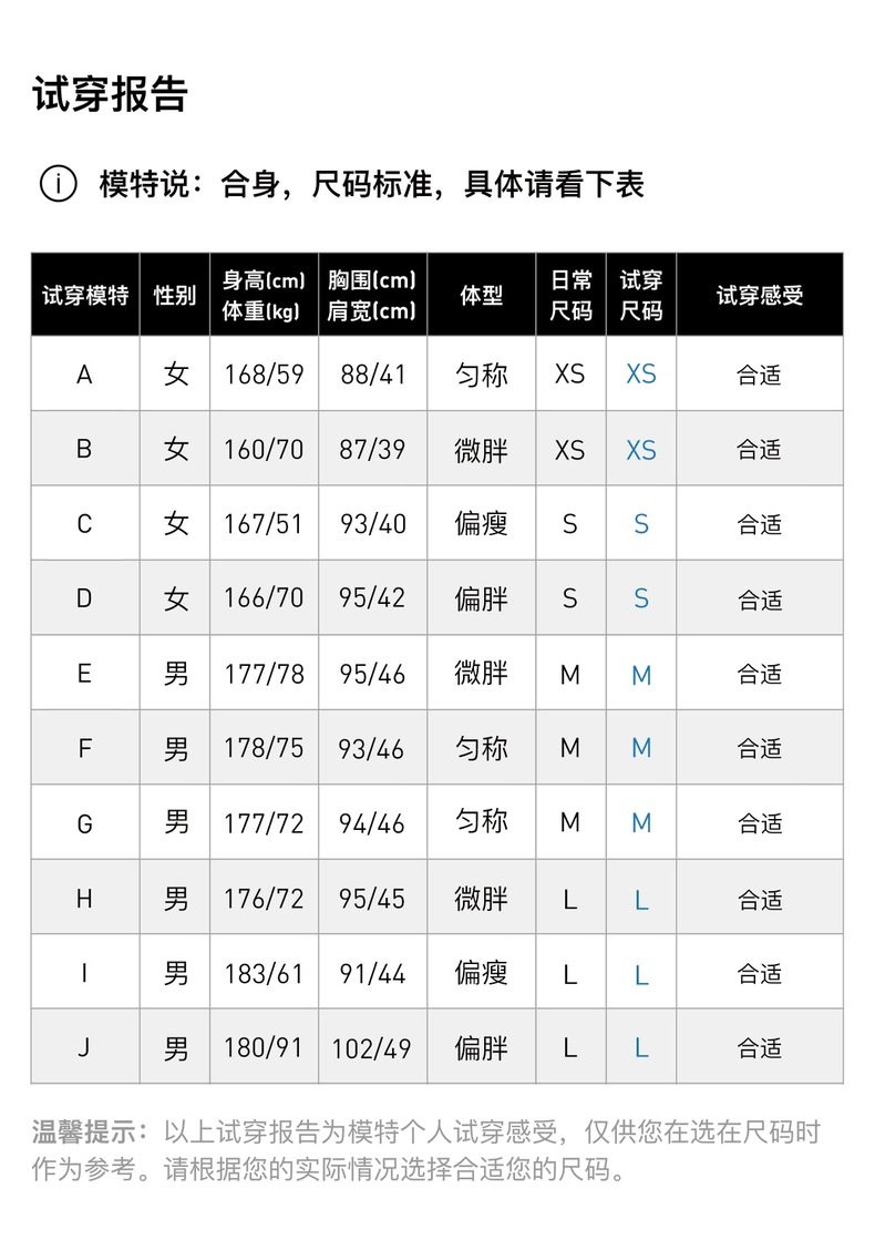 上装尺码 170/88A 175/92A 175/96A 180/100A 185/104A 185/108A 190/112A
