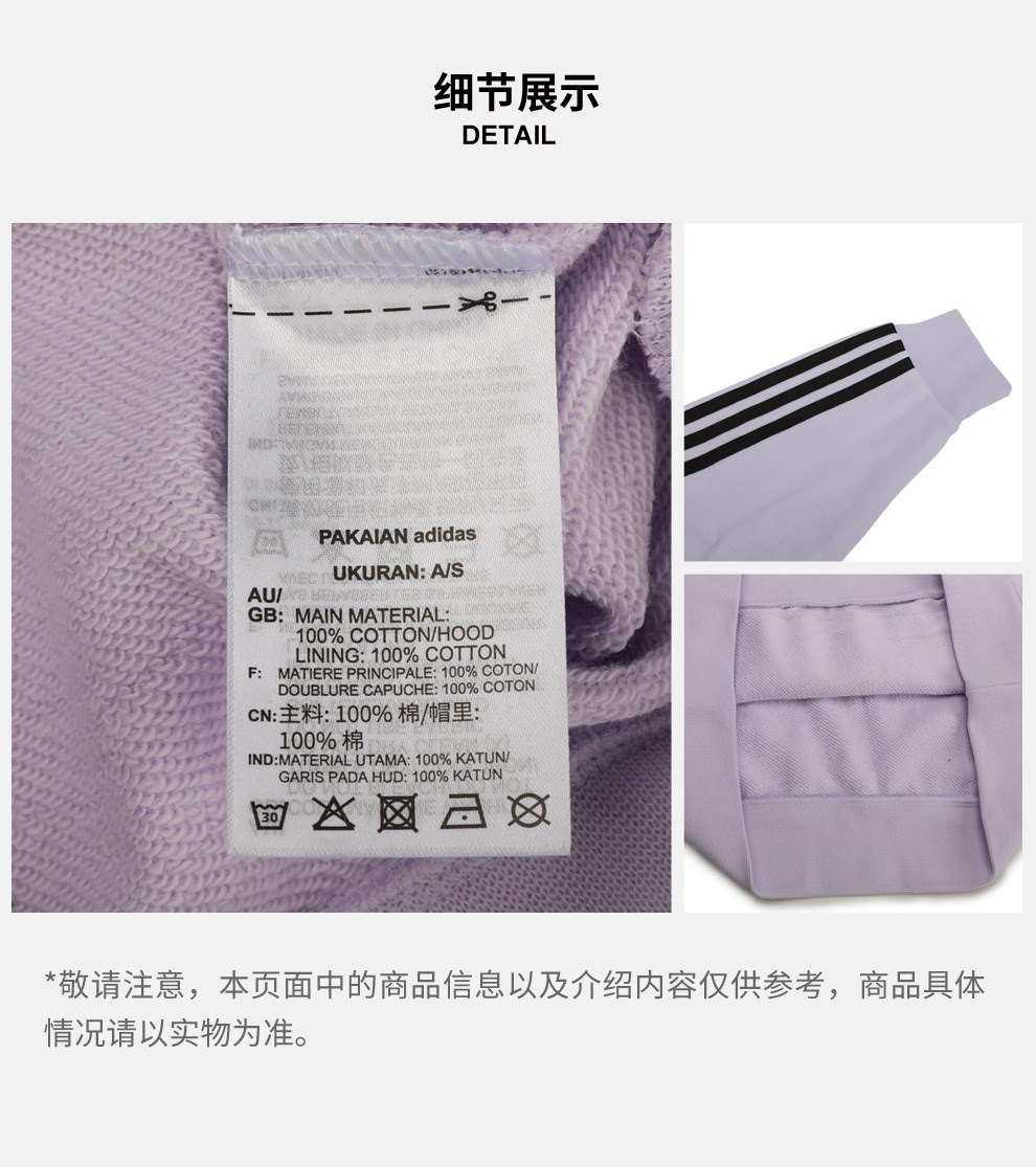 | 色系:紫色 | 服装板型:正常板型 | 服饰类别:上装 | 服细款:套头连帽卫衣 | 性别:女子 |
