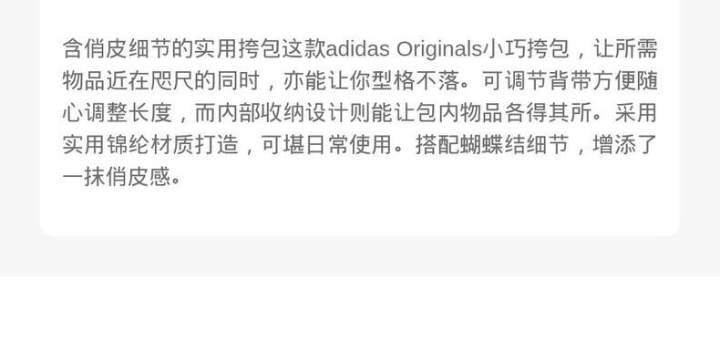 • adidas Originals阿迪三叶草2025中性BOWTIE SLDR BAG单肩包KC2769