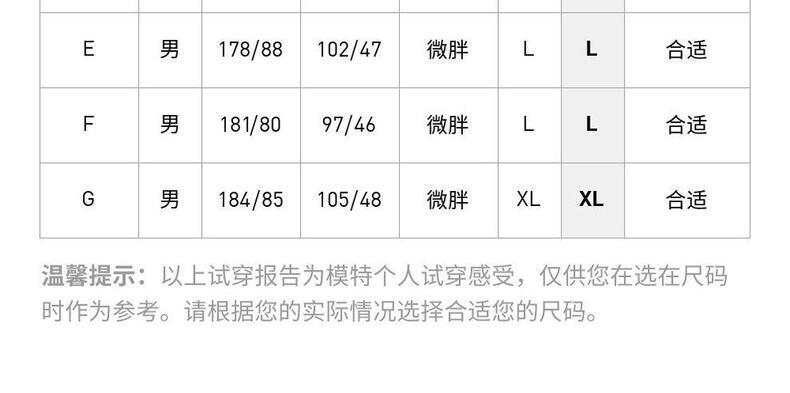 参考身高(cm) 163 166 169 172 175 178 181 184 186 188 190 190 190