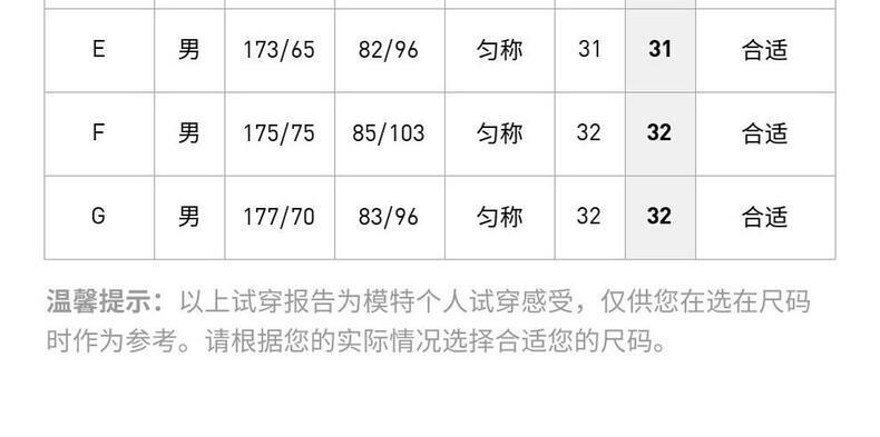 | 参考腰围(cm) | 68 | 71 | 74 | 77 | 80 | 84 | 88 | 92 | 96 | 101 | 106 | 112.5 | 119 |