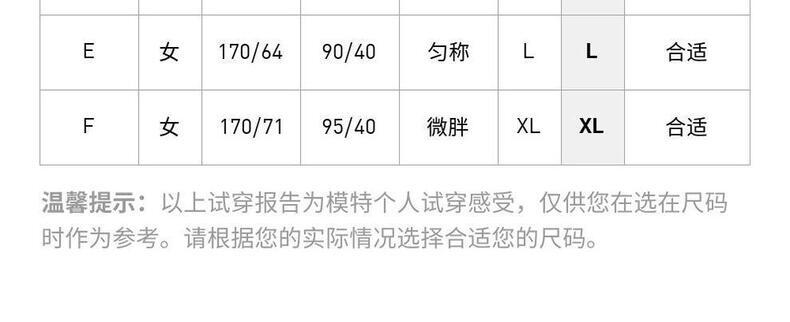 身高/胸围 165/72A 165/76A 165/80A 170/84A 170/88A 170/92A 175/96A 175/100A