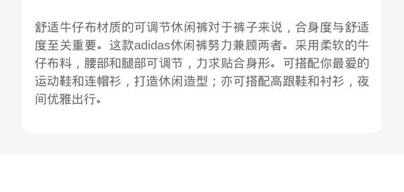 • adidas Originals阿迪三叶草2025女子DENIM PANT牛仔长裤KC5837