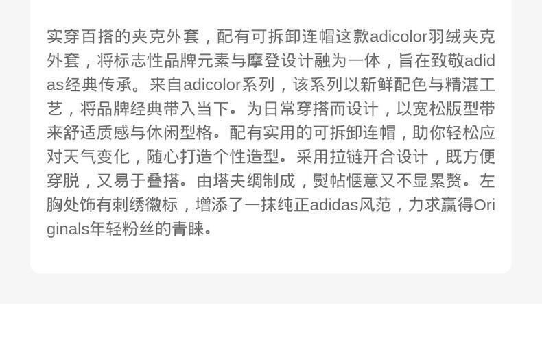 Originals(三叶草),adidas品牌旗下的运动经典系列,在全球各地有众多的追求者和拥有者。该系列以三叶草为标志,如同地球立体三维的平面展开,像一张世界地图,象征着三条纹延伸至全世界。这一系列大量运用20世纪40年代到80年代的元素作为设计灵感,具有强烈的复古感。adidas Originals是对阿迪达斯经典产品的传承。