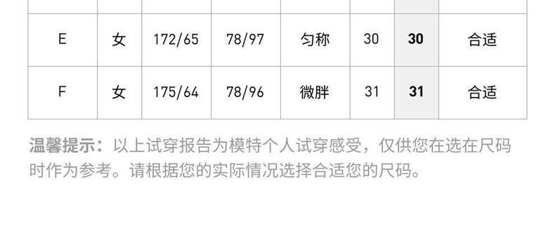 身高/腰围 165/54A 165/58A 165/62A 170/66A 170/70A 170/74A 175/78A