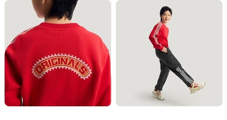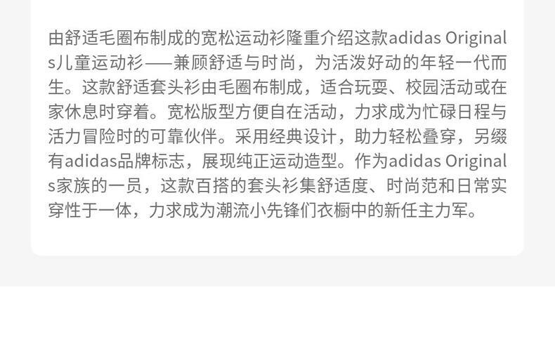 • Adidas Original阿迪三叶草2025男大童JK 3S SWEAT针织无帽卫衣IA8933