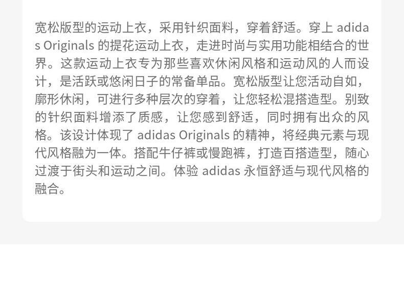 Originals(三叶草),adidas品牌旗下的运动经典系列,在全球各地有众多的追求者和拥有者。该系列以三叶草为标志,如同地球立体三维的平面展开,像一张世界地图,象征着三条纹延伸至全世界。这一系列大量运用20世纪40年代到80年代的元素作为设计灵感,具有强烈的复古感。adidas Originals是对阿迪达斯经典产品的传承。