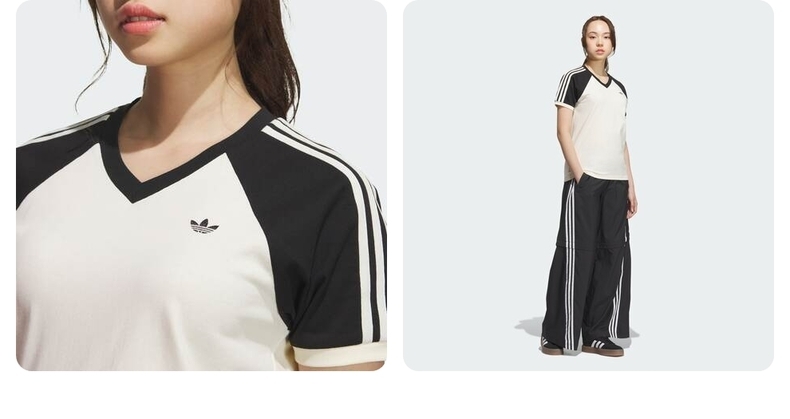 • adidas Originals阿迪三叶草2025女子V NECK TEE针织无领短TKF0316